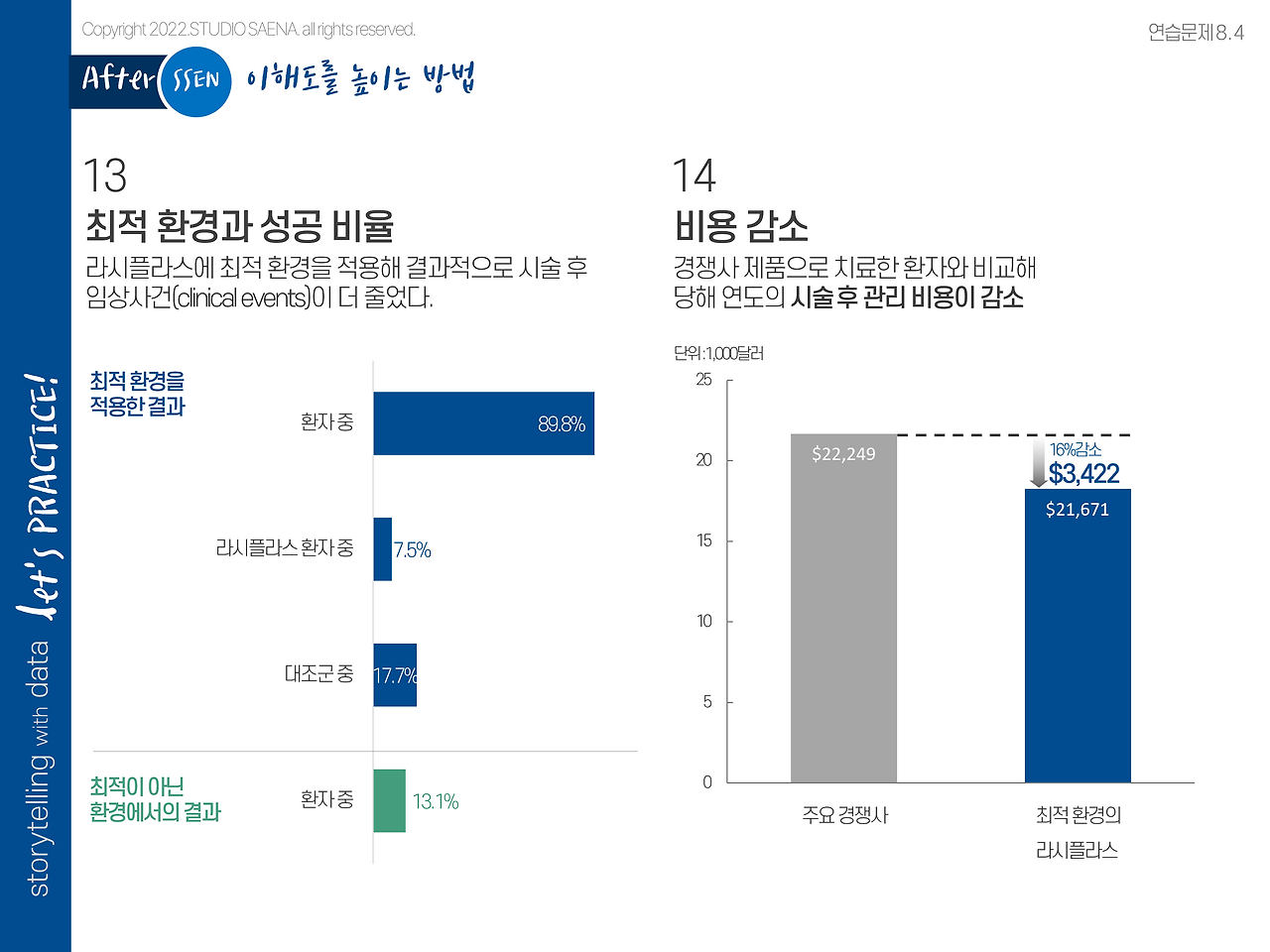 제목과 본문, 그리고 그래프 뒤에 작은 번호가 있는 부분이 있습니다. 13과 14가 함께 있는 걸로 봐서 두 개 항목이 동시에 있다는 판단이 드는데요. 특히 오른쪽의 그래프는 14번, 비용감소와 연관이 있는 내용으로 보입니다.