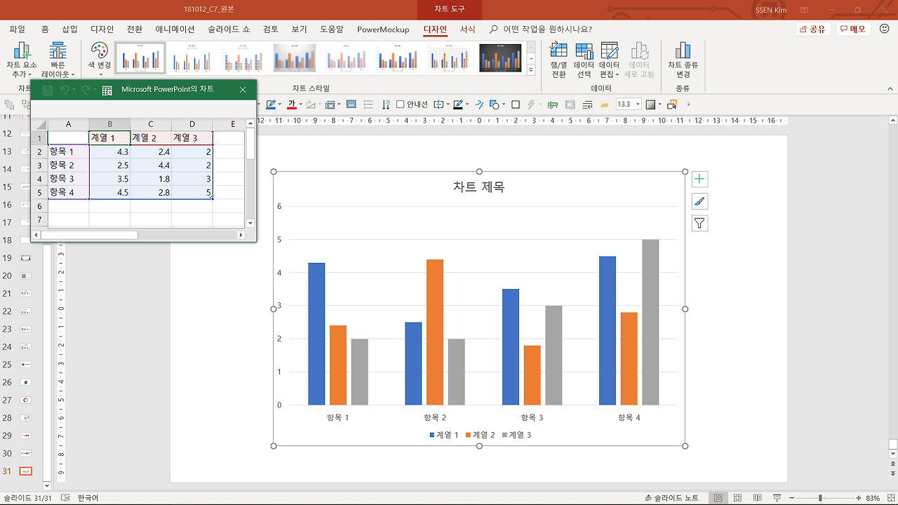 파워포인트의 차트 기능의 가장 큰 장점은 편리함입니다. 어떤 기능이든 프로그램에서 제공하는 대로 데이터만 입력하면 쉽게 완성할 수 있습니다.