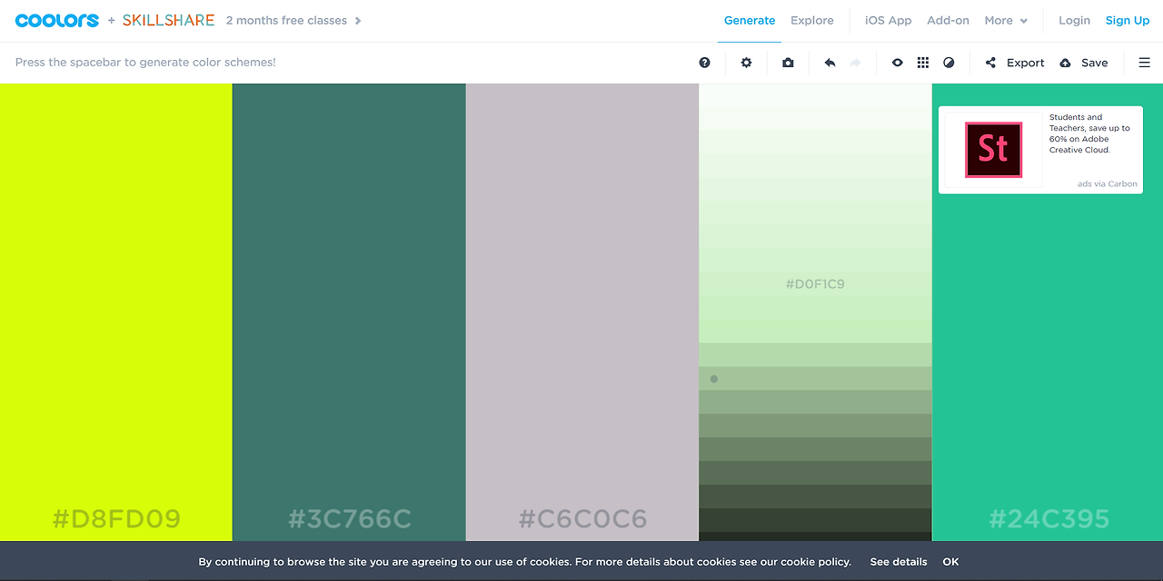 제가 여기서 말하는 '판'이란 파워포인트 슬라이드 기준의 세팅을 의미합니다. 어떤 색을 주로 사용할 것인지만 참고해 놓아도 내가 만들려는 슬라이드의 분위기나 콘셉트 방향들에 대한 든든한 가이드를 얻을 수 있습니다. 예전에는 핀터레스트나 구글에서 검색한 잘 만들어진 이미지를 픽픽(이미지 부분을 스포이드로 선택하면 그 색의 rgb 값이나 코드를 구할 수 있습니다. 이 정보를 파워포인트의 색 채우기-다른 색을 이용해 입력, 사용합니다)이나 파워포인트의 스포이드를 이용해 뽑아내고 마무리했다면, 이제는 colors.co 같은 사이트에서 원하는 색에 조금씩 변형을 준 값을 찾아낼 수 있습니다.