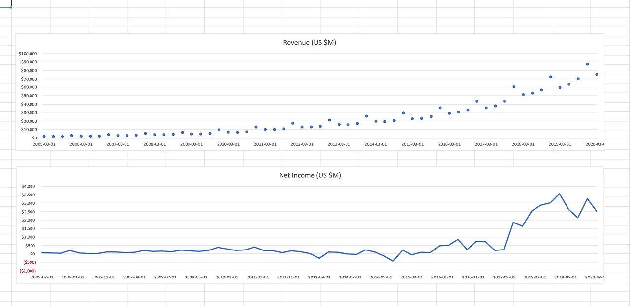 Revenue와 Income의 차이를 보여주기 위해서 그래프를 분리함.