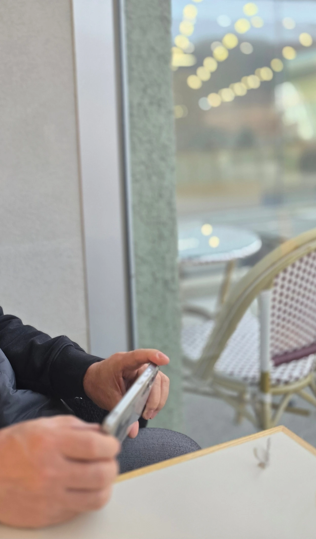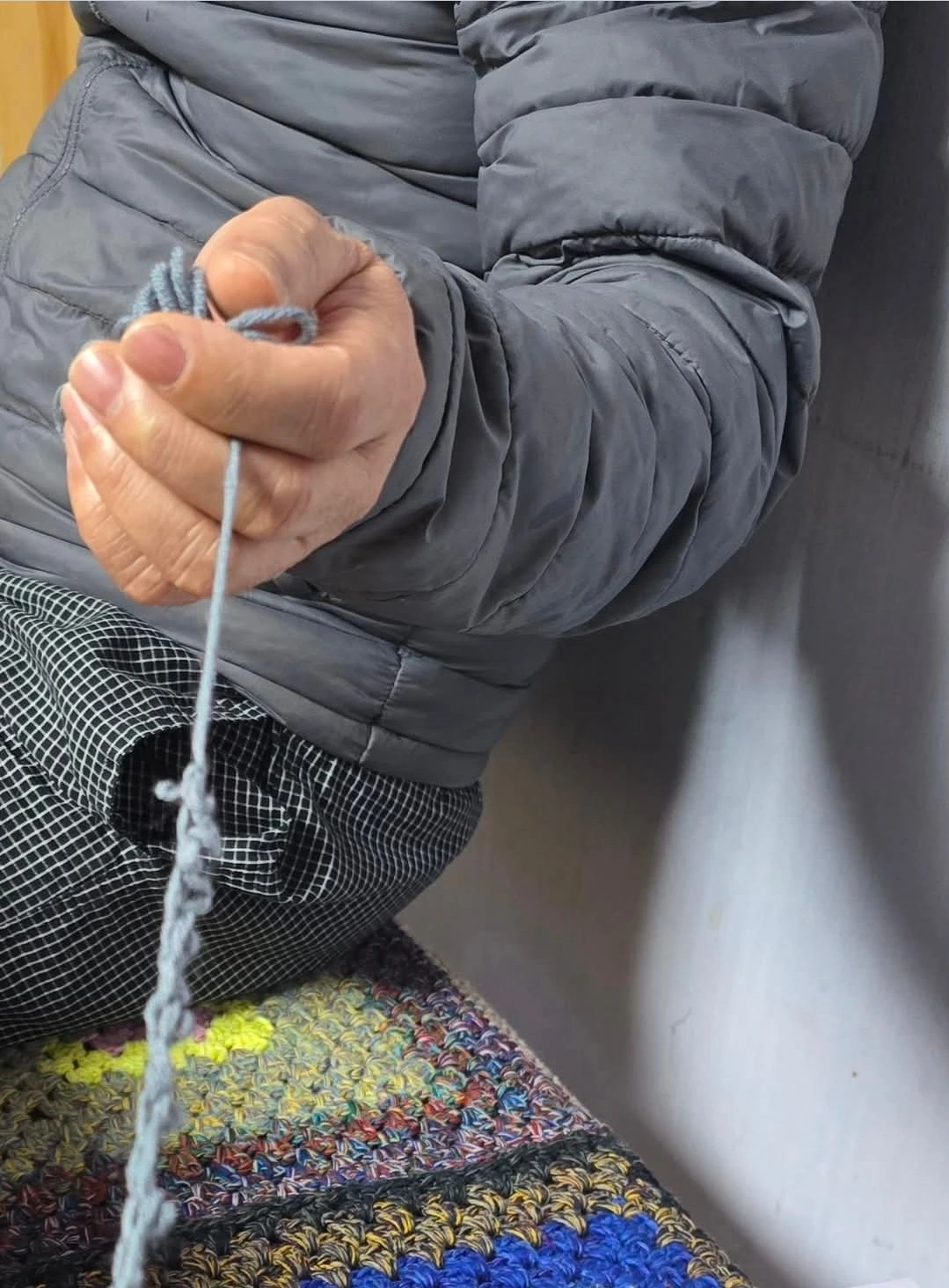 자리에 앉자마자 가방에서 꺼낸 건 요즘 한창 뜨고 있는 뜨개질. 코를 하나씩 떠나가다 보니 시간 가는 줄도 모르고 한 시간, 두 시간이 훌쩍 지나갔다. 집중할 땐 주변이 다 사라지는 내 버릇을 남편도 잘 안다. 뭔가 집중할 때 건드리면 그 후폭풍이 무섭다며 절대 말을 걸지 않는 사람. 그래서 오늘도 조용히, 지루한 시간을 아무 말 없이 기다려주고 있었다.