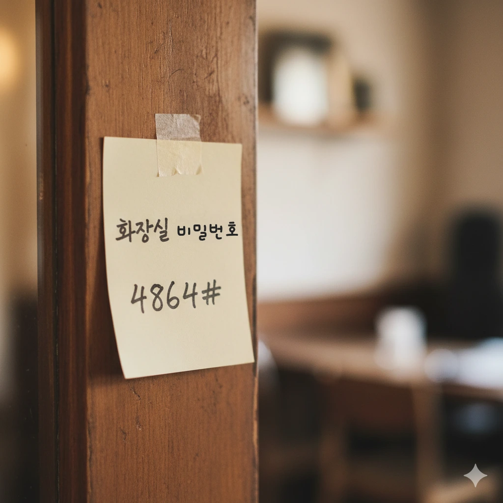 가게 밖에 있는 화장실을 사용할 때면 화장실의 비밀번호를 메모해 두는 버릇이 생겼다.