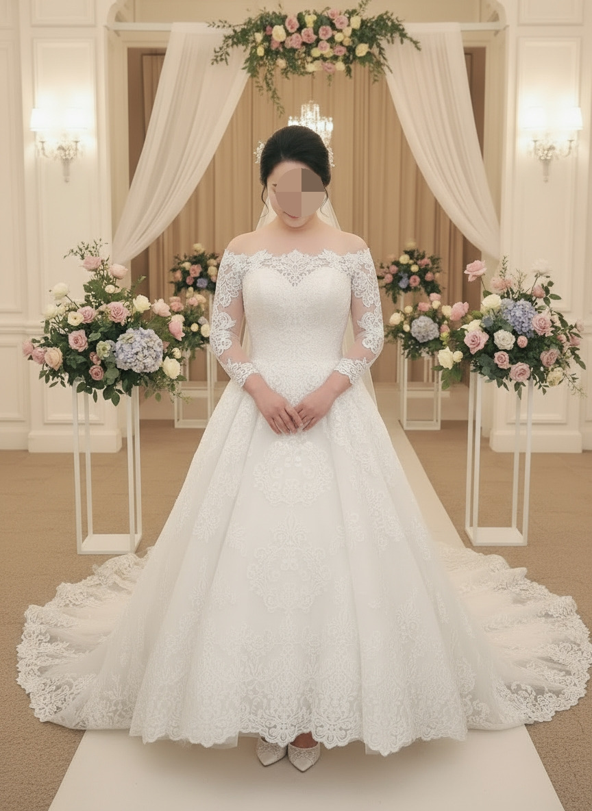 하얀 드레스 속에서 환하게 웃고 있었다.
