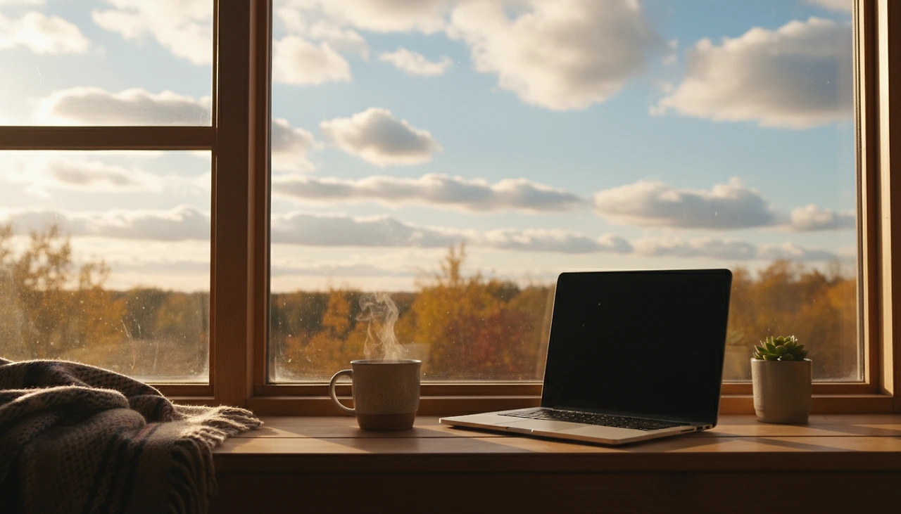 커서만 깜빡이는 화면 앞에 한참을 앉아 있다가, 결국 노트북을 덮고 창밖을 바라보았다.