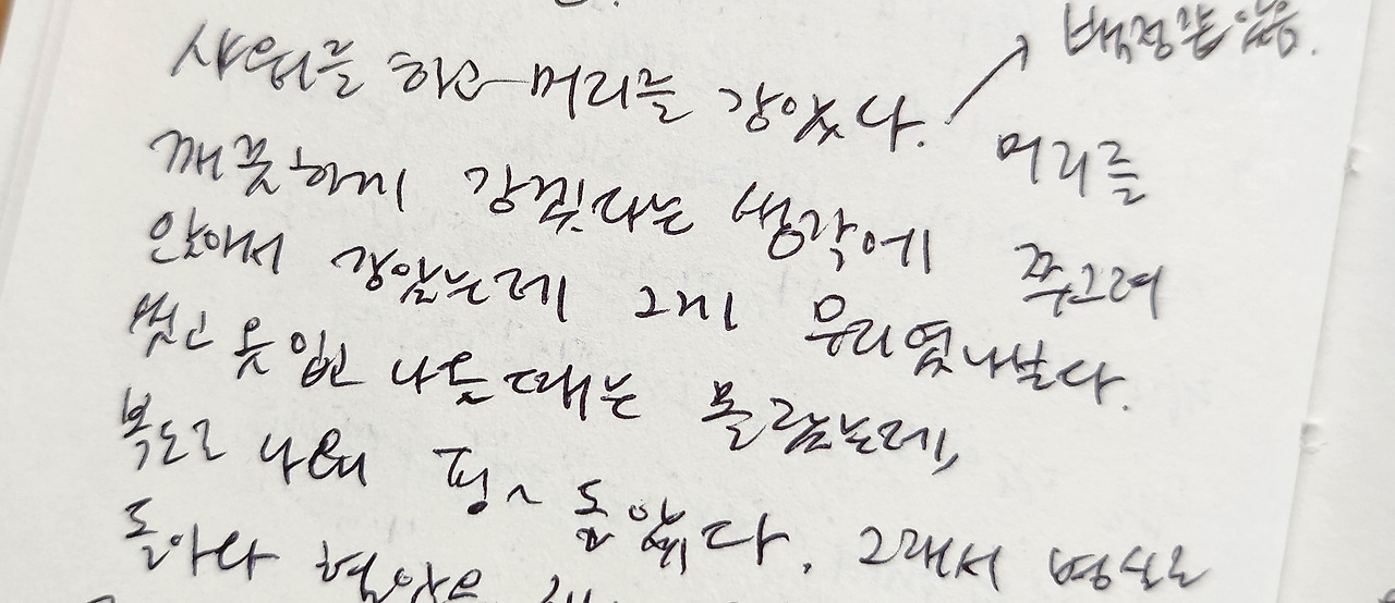 워낙 친하지 않은 사람들과는 낯을 가리는 편인데 병실에 오랫동안 함께 있다 보니 많이 편해져서 다른 분들을 언니라고 불렀다. 한 분이 단백질이 많은 음식이 ‘닭 가슴살, 병아리콩, 아몬드, 두부, 계란 등등’이라고 하셨다. 당장 먹을 수는 없지만 메모를 해두었는데, 저녁 반찬에 잘게 썰어 으깬 메추리알이 나와서 맛있게 먹었다. 밥을 많이 먹지 못하니 맛있는 반찬이 나오면 그거라도 잘 먹어야 했다.
