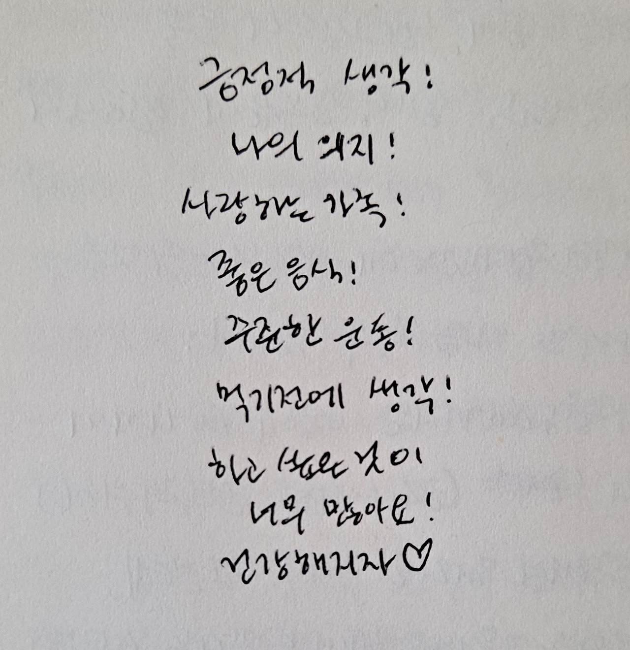 기운이 없으면 물건이 두 개로 보인다. 걷기 운동을 할 때 먼 곳을 보면 흔들려 보이거나 모든 것이 두 개로 보였다. 그럴 때는 하는 것을 멈추고 쉬었다. 잘 먹지 않아서 생기는 현상이었다. 엄마는 통화할 때마다 “우리 딸 오늘은 많이 먹었어?”라고 묻고, 아빠는 “암튼 건강해야 한다.”라고 하신다. 그 말에 대부분 “응”이라고 대답하는데, 사실은 아닐 때도 많다. 먹고 싶지만 먹히지 않고, 억지로 먹다가는 토할까 봐 못 먹겠다.