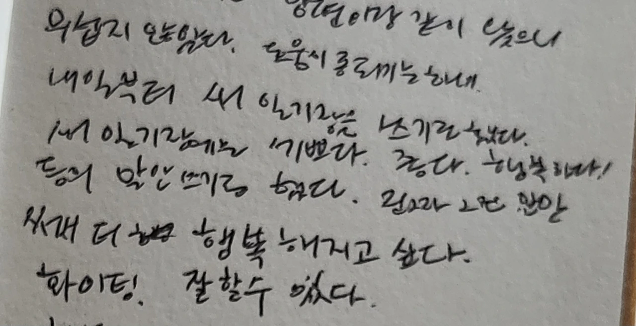 오늘은 주문한 새 일기장을 받았다. 기존에 쓰던 일기장은 앞에 몇 페이지 빼고는 내 마음을 힘들게 하는 말들로 꽉 채워졌다. 병원에서의 생활은 물론, 아팠다, 슬펐다, 짜증 났다, 난 왜 그럴까… 등 자존감을 깎아내리는 말들만 가득했다. 그런 말들이 나를 좀먹는다는 것을 알지만, 내 손은 계속 그렇게 쓰고 있었다.