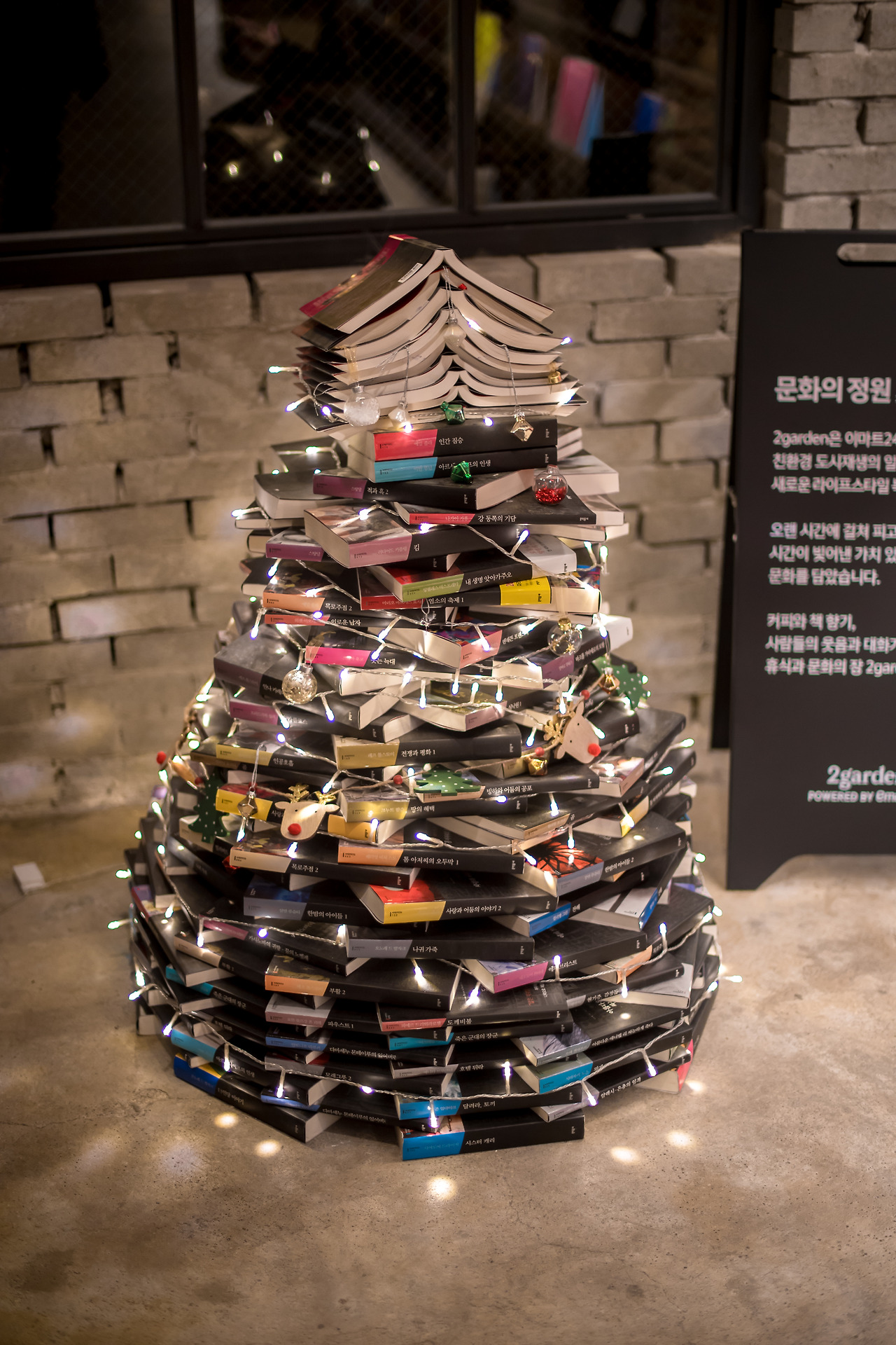 아주 멋진 크리스마스트리를 발견했다. 매번 영화나 사진으로만 보던 북트리가 내 눈앞에 있었다. 그걸 보는 순간 두 손으로 입을 막아 새어 나오려는 환호성을 겨우 참아냈다. 언제 보아도 참 기발한 발상이다. 나 같은 책 애호가에게는 최고의 연말 트리가 아닌가 말이다. 언젠가 내 집에 저렇게 멋진 연말 북트리를 만들겠다는 작은 소망이 생기는 순간이다. 그래, 이것은 나의 로망 중 하나다.