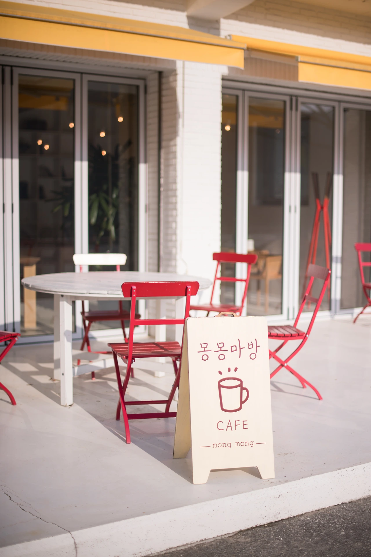 군위에서 다시 대구로 돌아가는 길에 뜬금없이 너무 예쁜 건물이 나타났다. 카페인가? 순전히 호기심에 들어가게 된 곳. 도저히 카페가 있을 것 같지 않은 국도에서 마주한 쨍한 노란색 입간판과 차양막은 사람들의 눈길을 끌기에 충분하다. 이런 곳에 위치한 카페의 음료가 맛이 있을 리 없다고 생각하면서도 궁금한 마음에 발길을 멈출 수 없다.