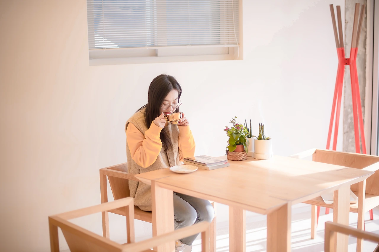 몽몽마방. '어리석은 꿈을 꾸는 방앗간'이라는 뜻의 이름을 가진 카페는 작은 미술관 같기도 하고, 건축 디자이너의 공간 같기도 하다. 미술 관련 서적이 한쪽 벽면을 채우고 있어 그런 추측이 가능하다. 통창으로 들어오는 따뜻한 햇살에 광합성 중인 식물과 아기자기한 소품들이 눈을 즐겁게 한다. 이곳의 시그니처 음료인 모과차는 직접 키운 오래된 모과나무의 모과로 만들었다고 한다. 이 공간에 대한 애정이 음료에도 배어 있다. 이런 곳에 있는 카페의 음료가 맛이 있을 리 없다던 나의 예상은 보기 좋게 빗나가고 만 것이다. 이로부터 2년 후에 나는 직장이 옮겨져 자연스럽게 국도를 이용하게 되면서 사유원이라는 곳을 방문하고, 이 카페가 그곳의 일부라는 사실을 알게 된다.