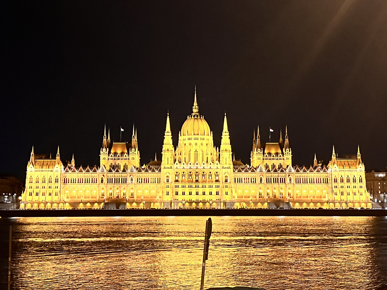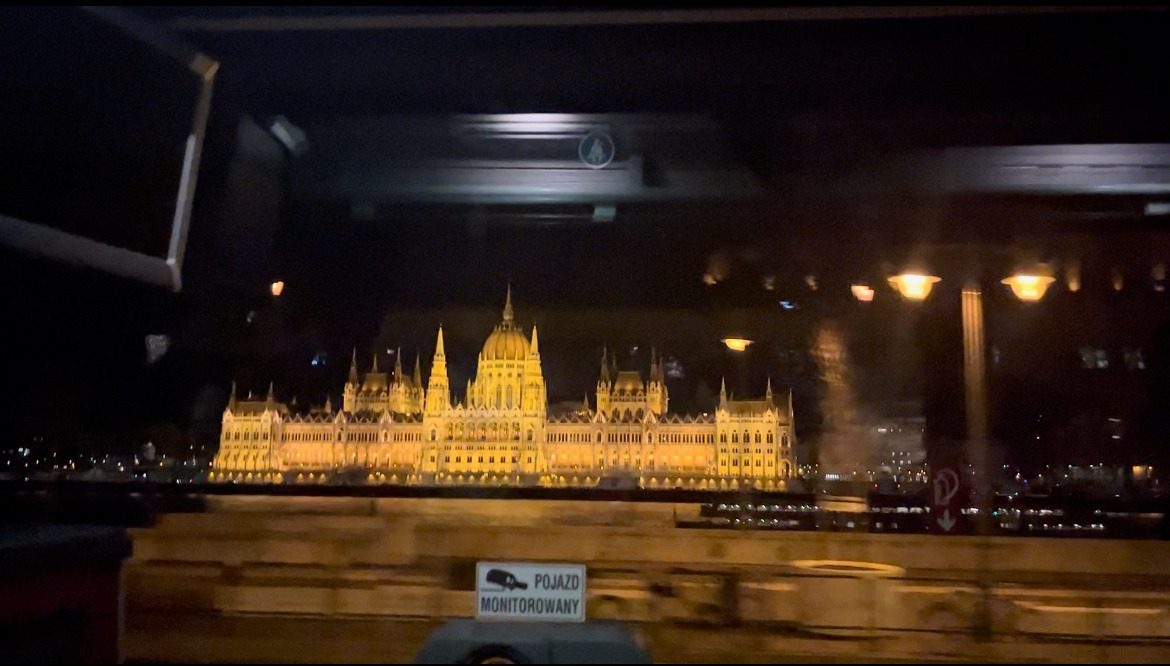 식사를 하고 나오니 좀 덜 추운 것 같았다. 이제 제일 궁금하고 기대했던 부다페스트 야간투어! 화려한 조명에 비친 국회의사당을 보러 갈 차례다. 버스에 몸을 싣고 핸드폰 카메라를 켠 채 창문만 바라보고 있었다. 조금 뒤 국회의사당의 모습이 나타났다. 칠흑 같은 밤 속에 빛나는 형체가 믿기지 않았다. 사진으로만 봤던 그곳이 내 눈앞에 있었다. 멀리서 봐도 아름답고 가슴이 벅차오르게 멋진데 이걸 더 가까이서 볼 수 있다고? 너무 좋다. 행복하다. 어서 빨리 내리길 기다리며 버스창문으로 보이는 국회의사당 영상과 사진을 남겼다.