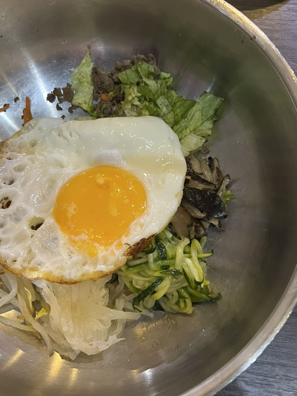 저녁은 이름만 들어도 설레는 한식의 꽃 비빔밥이다. 왜 꽃이냐고? 모른다. 지금 이 순간 내가 한식이 너무 고프기 때문에 내 마음대로 꽃이라고 할 거다. 매장 안으로 들어갔는데 정말 한국에 돌아온 줄 알았다. 무심한 인테리어와 가구들.. 이곳은 음식뿐만이 아니라 매장도 한국이다. 비빔밥이 나왔고 미니 된장국이 나왔다. 거짓말 안 하고 5분 만에 흡입한 듯하다. 잘 먹었다 정말. 만족한 배를 퉁퉁 치며 나왔다. 역시 한식이 제일 맛있어.