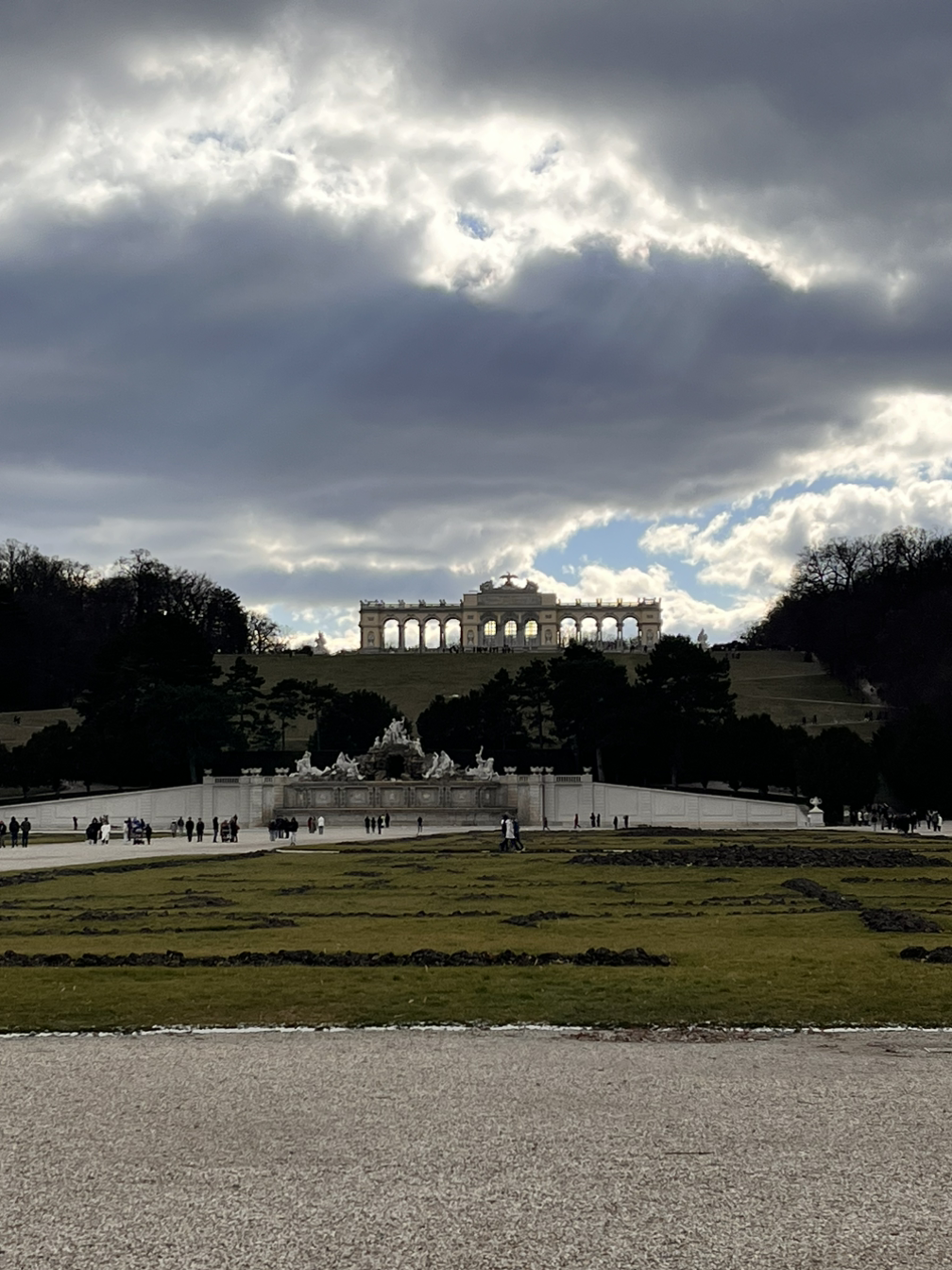 유익한 설명을 뒤로하고 쇤부른 궁전에 있는 대정원으로 향했다. 바람이 불고 추웠지만 하늘이 맑아서 기분이 날아갈 듯했다. 날이 좋아서 그런지 사람들이 많아 생기가 돌았다. 언덕 위에 카페가 있다고 했는데 자유시간이 얼마 남지 않아 버스로 향했다.