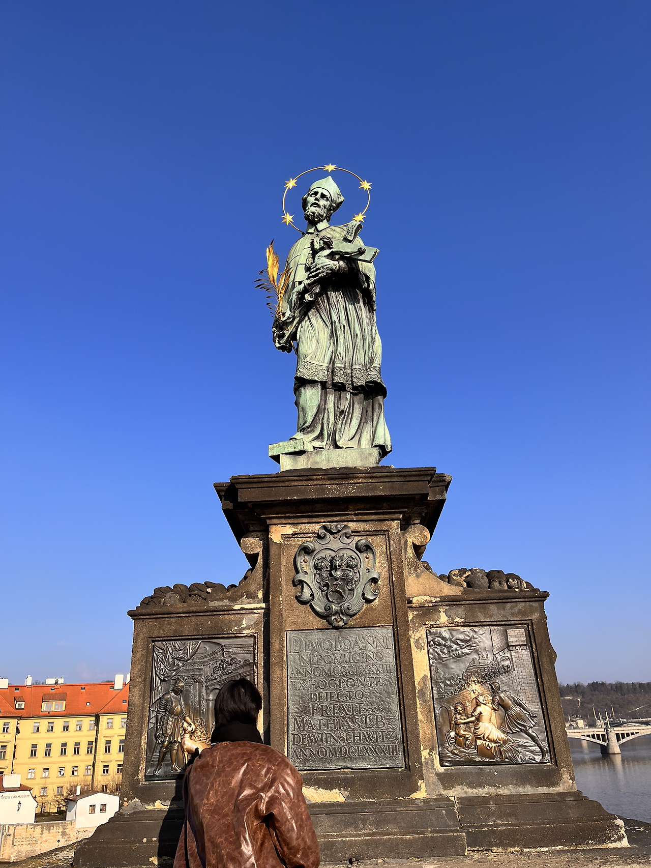 다리 중간에는 30개의 동상이 서 있다. 그중 만지면 행운이 온다는 네포무츠키 상인의 동상은 하도 만져서 색이 변했다. 행운을 놓칠 수 없지 만지려고 갔는데 옆에 강아지 부분으로 된 곳이 하도 만져서 강아지도 색이 바래있었다. 역시 강아지 귀여워는 만국 공통인가 보다.