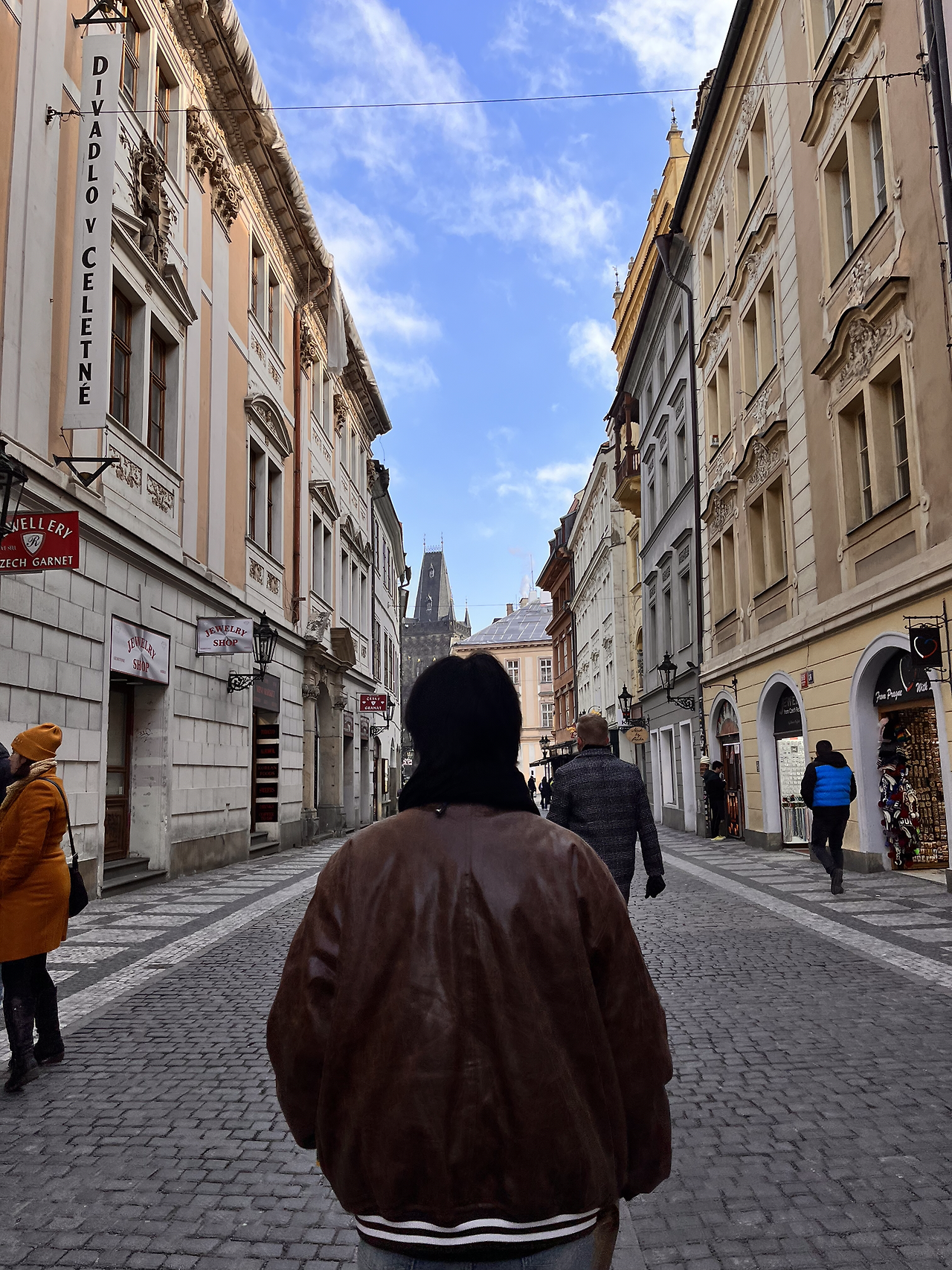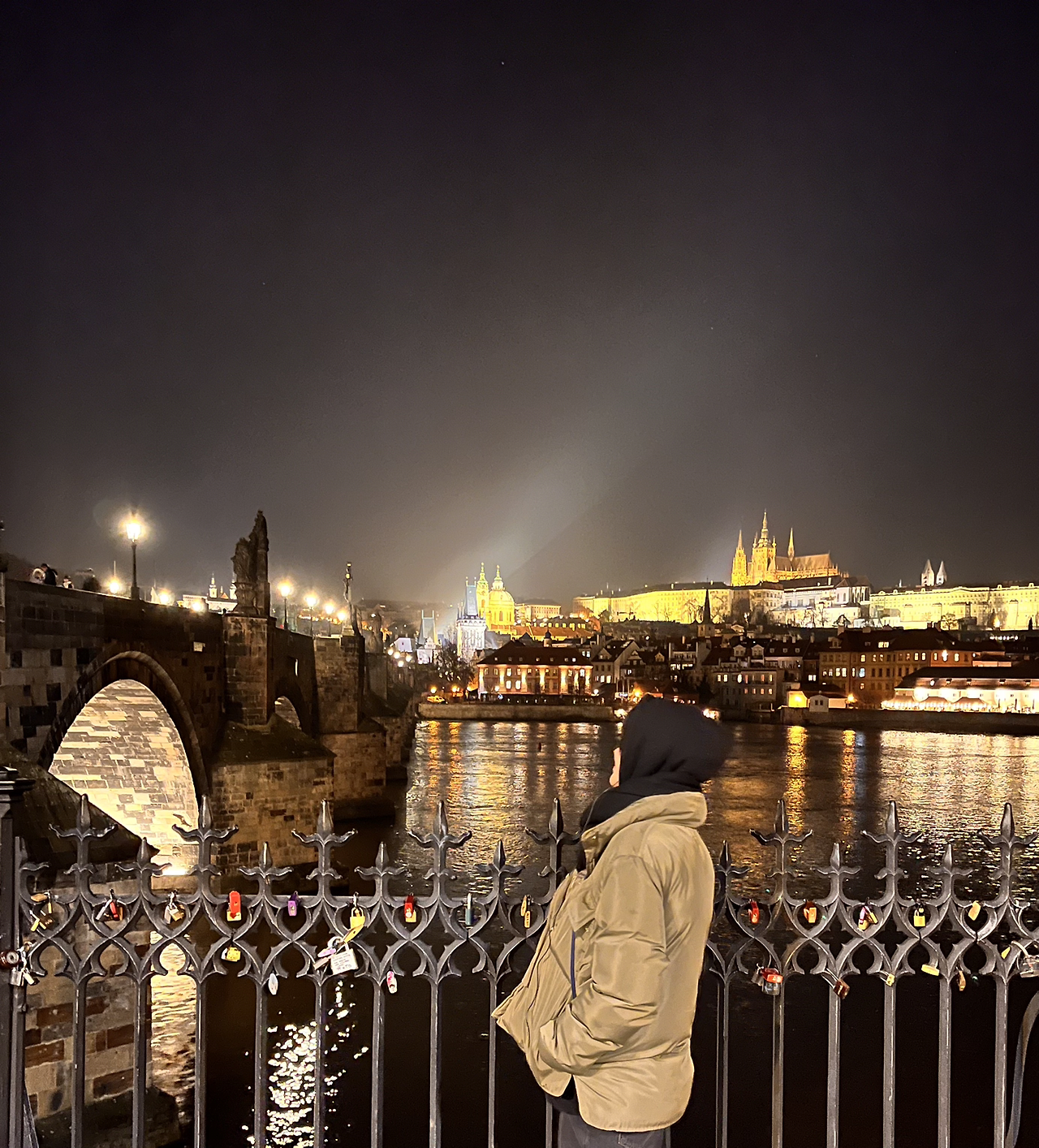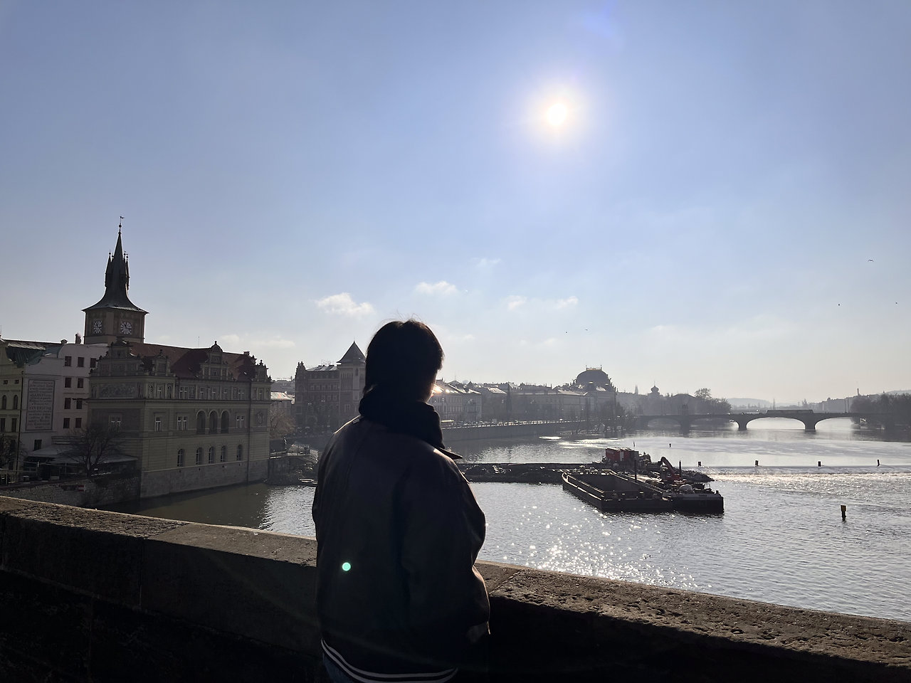 그렇게 카를교 입구(?) 쪽에서 핫와인을 원샷한 뒤 우리는 카를교를 걷기 시작했다. 카를교는 문화의 다리로 유명하다. 다리 위에는 음악과 미술, 퍼포먼스가 넘쳐났다. 초상화를 그려주시는 화가분들도 계시고 연주를 하시는 아티스트분들도 많았다. 분위기가 활기찼다. 겨울이라서 별로 없는 것이라고 가이드님이 알려주셨는데 날이 풀리면 얼마나 더 활기찬 다리의 모습일까 상상하니 따듯한 날에도 이곳에 와보고 싶은 충동이 들었다.