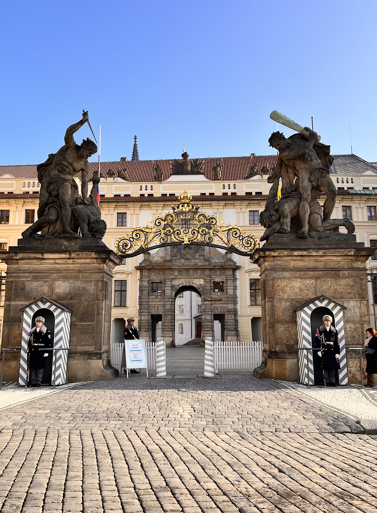 성 비투스 대성당을 나와 프라하 성을 거닐었다. 입구 쪽에는 타이탄 동상이 있었는데 나쁜 타이탄을 혼내주고 있는 헤라클레스의 모습의 동상이라고 가이드님이 설명해 주셨다. 친구는 취향저격당했는지 열심히 동상을 찍었다. 덕분에 이렇게 사진을 올릴 수 있어서 친구에게 감사하다.