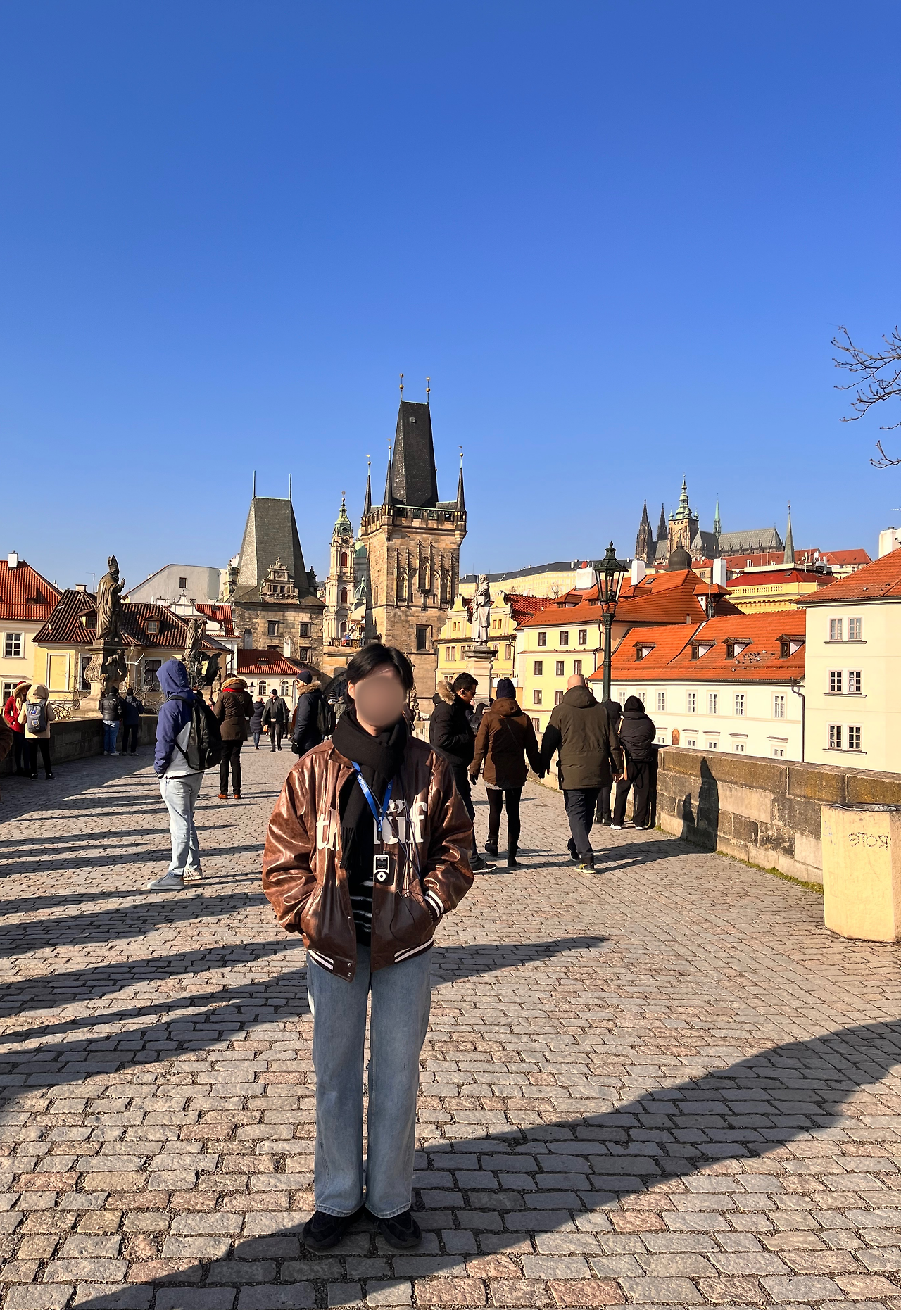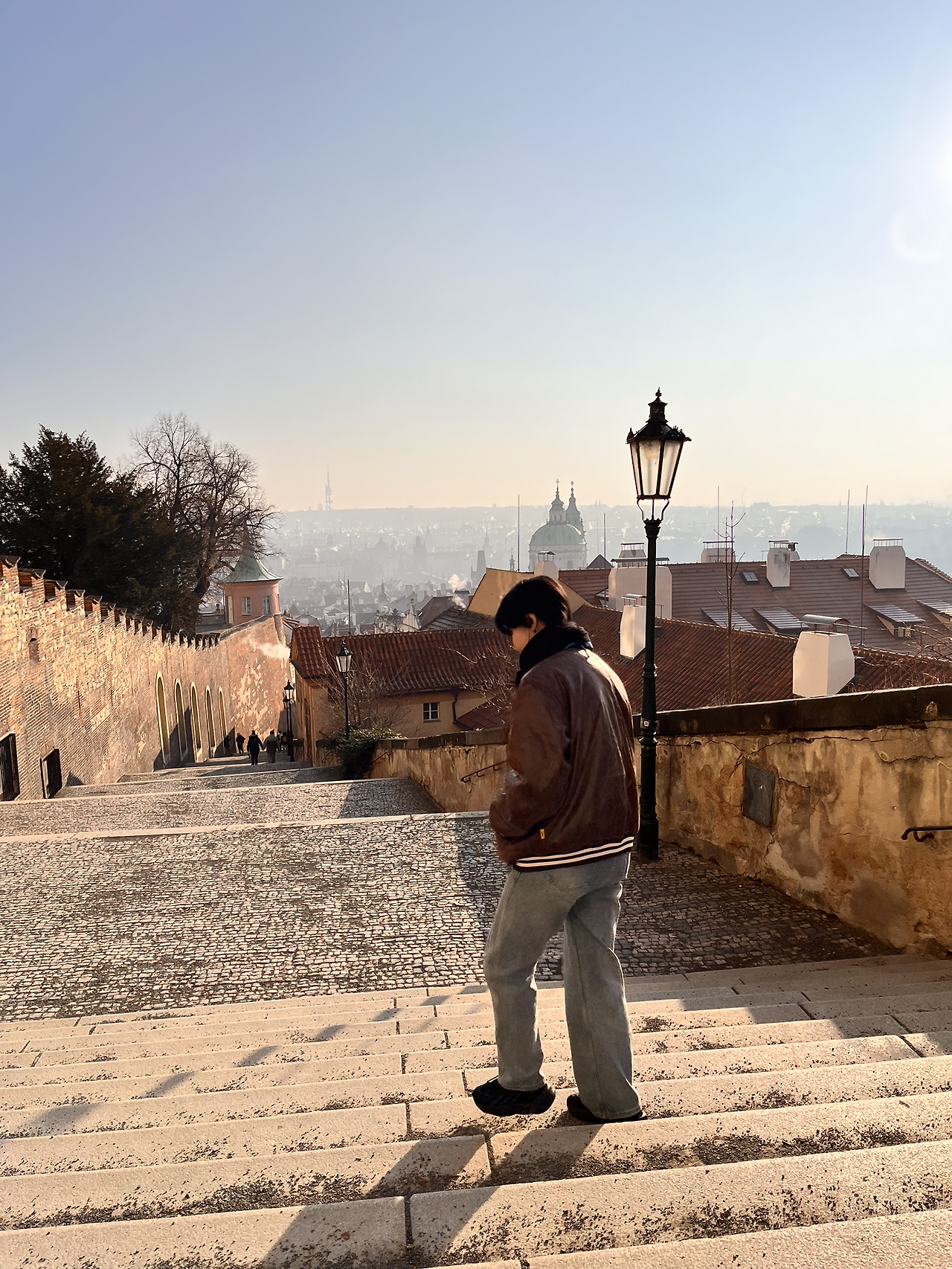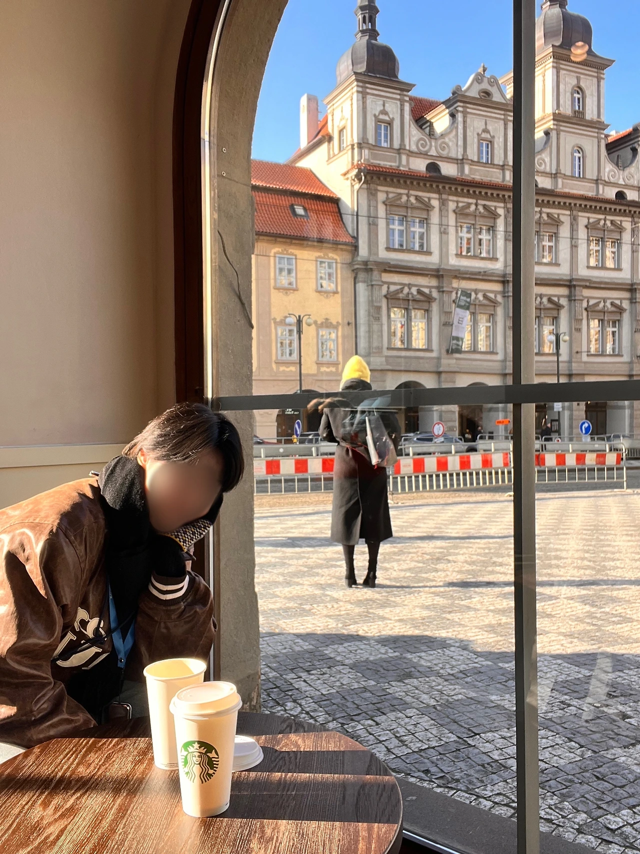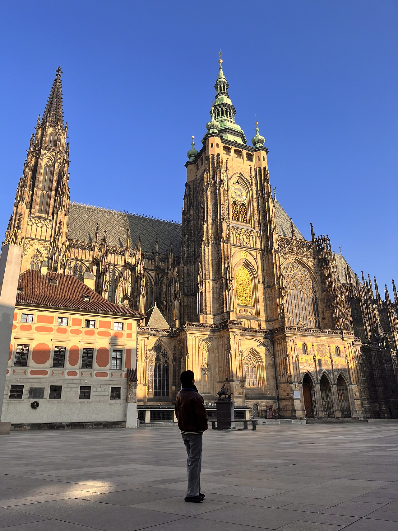 프라하 성을 돌아다니면 이곳저곳 찍고 싶은 것들이 많이 나온다. 사진으로 보면 더워 보이지만 추웠다. 햇빛이 너무 강해서 전경이 안 보이다니… 사진에도 전경이 뿌옇게 담겨서 와.. 진짜 유럽의 해는 세다는 걸 피부로 느끼고 눈으로 느꼈다. 이 아래쪽에는 프라하 성 스타벅스가 있는데 야외테이블도 이용 가능해서 현지인이나 관광객 모두에게 인기가 많다고 했다. 하지만 우리는 가지 않았다. 패키지니까.. 갈 수 없었다.. 마음으로 눈물을 흘렸다.