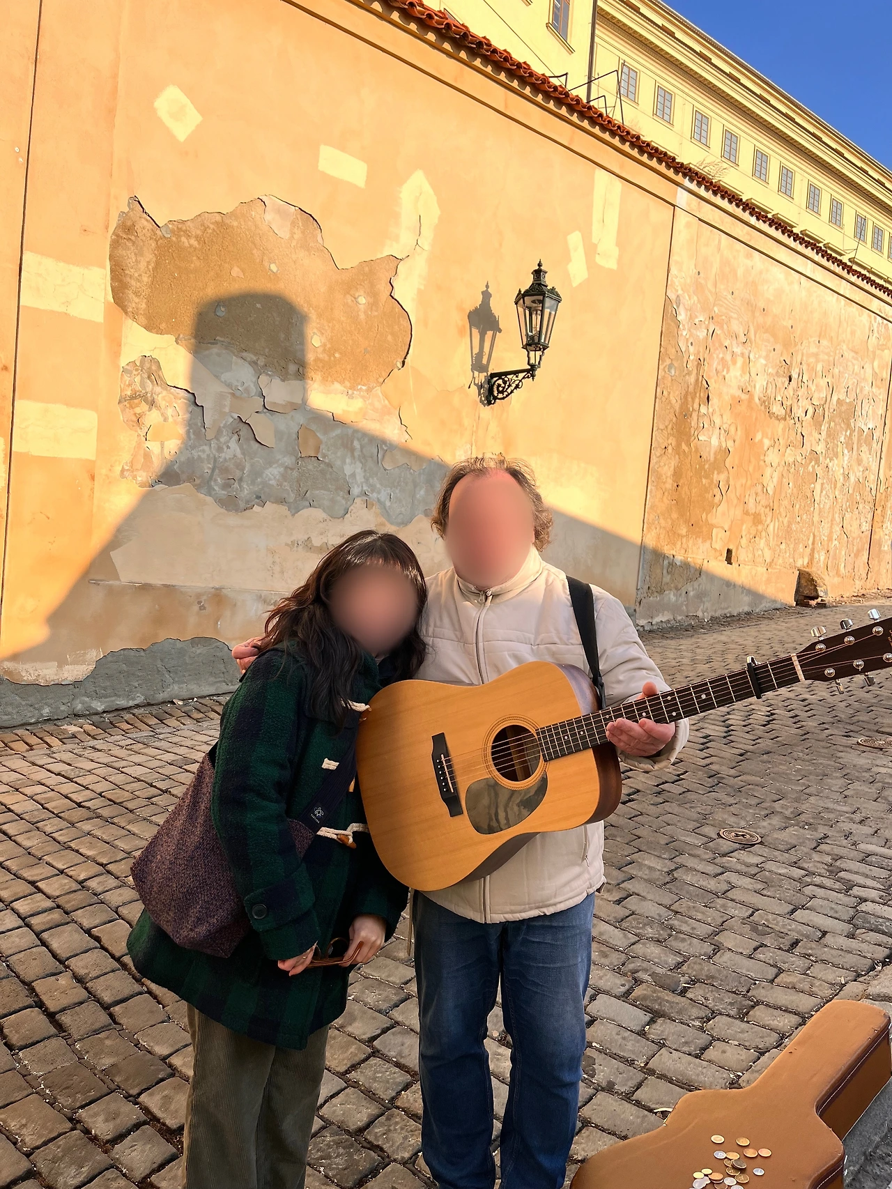 내 친구가 버스킹 하는 아티스트분을 보더니 주섬주섬 동전을 찾기 시작했다. 그러자 아티스트분이 연주를 멈추고 내 친구에게 성큼성큼 다가갔다. 조금 무서웠다. 연주팁을 줄 것이라는 걸 확신한 걸음걸이셨다. 그리고 자연스럽게 어깨동무를 하셔서 나도 자연스럽게 핸드폰 카메라를 켰다. 정말 환상의 호흡.. 아티스트분 파워 외향인이신 듯했다. 재밌는 추억을 생성하고 우린 프라하 성을 빠져나왔다. 사실 프라하 시내 올드트램이 선택이었는데 우리는 선택하지 않아서 자유시간이 생겼다. 선택관광을 신청하지 않은 우리를 셀프 칭찬했다. 우리 자유시간이 생겼는데.. 카페라는 곳을 가볼까? 드디어? 신나서 빨라진 걸음걸이로 카페로 향했다.