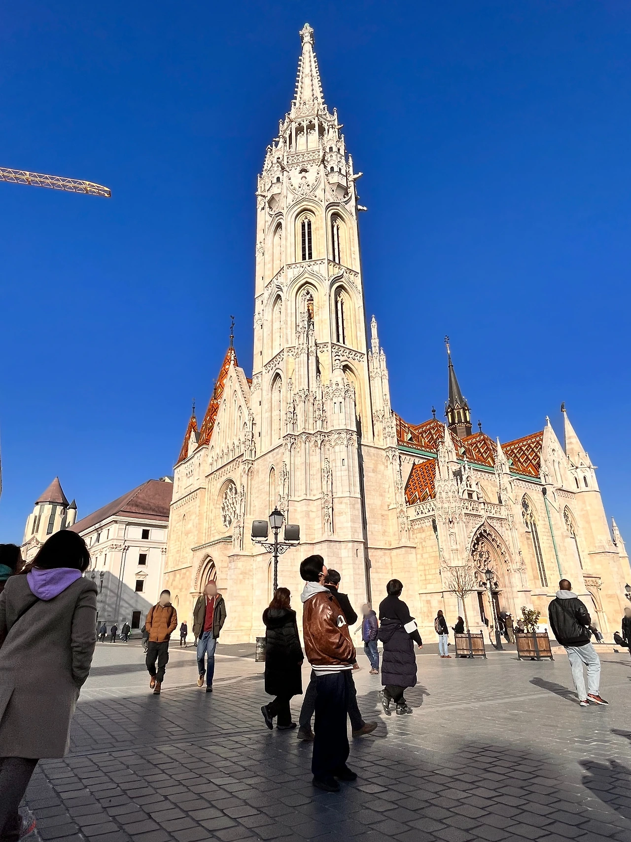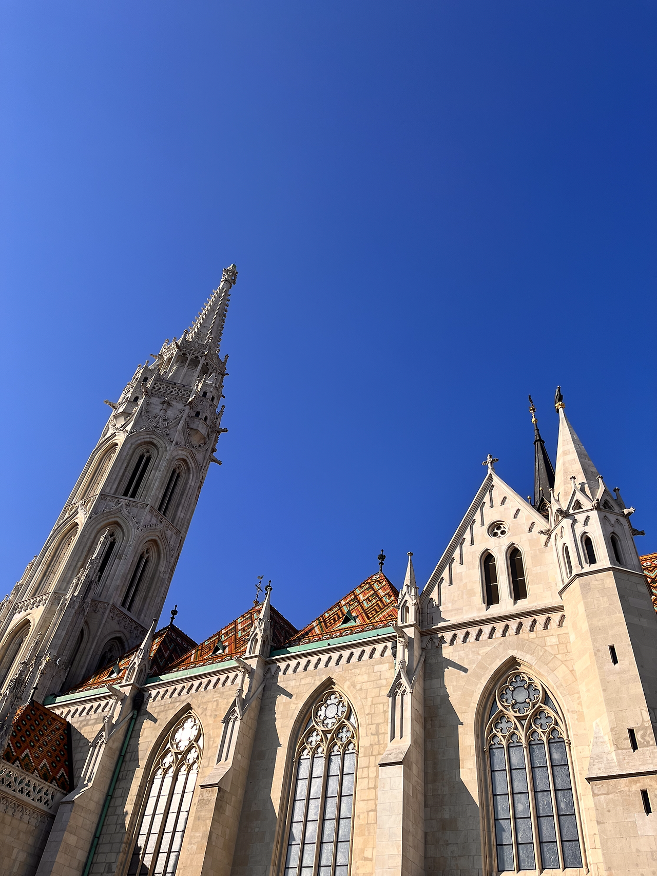 그렇게 거리 구석구석을 구경하다가 도착한 마치 시 성당. 역대 헝가리 왕들이 대관식을 올렸던 곳. 1470년 마차시 왕의 명령으로 교회 첨탑이 증축되면서 마차시라는 이름이 생겼다고 한다. 13세기부터 지금까지 많은 건축양식 변화를 거치다가 본래의 모습인 고딕 양식으로 완성되었다. 이국적인 성당 앞에서 사진을 찍으니 알차게 여행하는 느낌이 팍팍 들었다. 그 옆에는 어부의 요새가 (뾰족한 고깔 모양 타워 7개)가 있다.