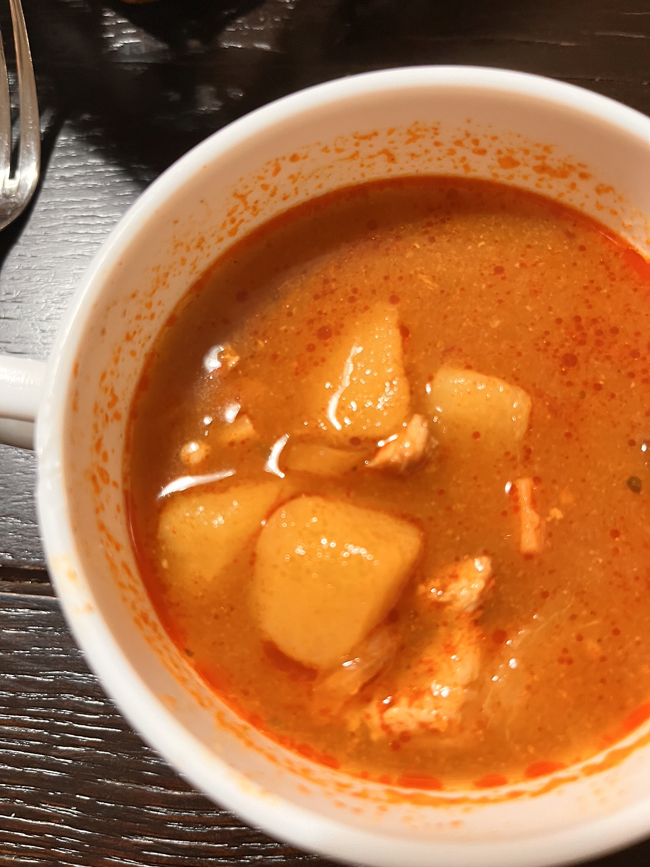 패키지여행안내글을 보면 고기에 대한 설명은 나와있지 않고 굴라쉬만 설명글이 있어서 그렇게 유명한 스튜인가?라는 생각이 들었다. 보통 고기가 주인공이거나 고기에 대한 설명이 많은데 스튜만 설명이 되어 있어서 그렇게 대단한 스튜인가..? 했는데 먹고 감동했다. 육개장의 맛과 굉장히 흡사했다. 굴라쉬는 헝가리가 원조지만 과거 오스트리아-헝가리 제국의 지배하에 있던 국가들(오스트리아, 독일, 크로아티아, 알바니아, 북부이탈리아 등)에서도 맛볼 수 있는 스튜이다. 소고기에 양파, 버섯, 토마토, 파프리카 등 각종 채소를 함께 끓여낸 형태의 스튜인데 빵과 함께 먹으면 더 맛있다고 한다.) 한입 먹고 거의 원샷하 듯 다 먹어버려서 빵에 찍어먹을 수 없었다. 육개장의 깊은 맛이 굴라쉬에서도 나서 신기했다. 그리고 같이 나온 고기는 삶은 느낌이 강했다. 담백해서 나쁘지 않았지만 약간 퍽퍽했다. 그래도 만족스러운 식사였다.