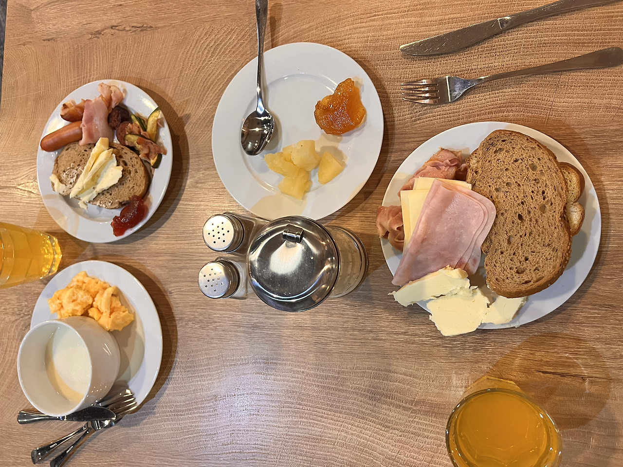 눈을 떴다. 오늘이 패키지여행의 마지막 날이다. 아쉬운 마음도 있었지만 6일 여행기간이 딱 적당하다고 생각됐다. 많이 지치기도 했고 한국의 매콤한 음식이 그립고.. 충분히 이 여행을 재밌고 행복하게 보냈기 때문에.. 후회는 없다. 보통 지인들을 보면 유럽여행은 자유여행으로 2주나 3주씩 길게 여행 다니는데 나는 못할 것 같다. 자유여행이라 느긋하게 즐길 수는 있겠지만.. 나는 가성비를 따지는 사람으로서 6일 빡세게 많이 가볼 수 있는 여행이 좋았다. 짐을 챙기고 씻고 마지막 조식을 즐기러 향했다. 마지막날이라서 그런지 많이 단출해진 우리의 아침식사모습.. 이제 이 버터와 빵.. 안녕이다. 제일 맛있었던 조식.. 안녕.. 그리울 거야.(?)