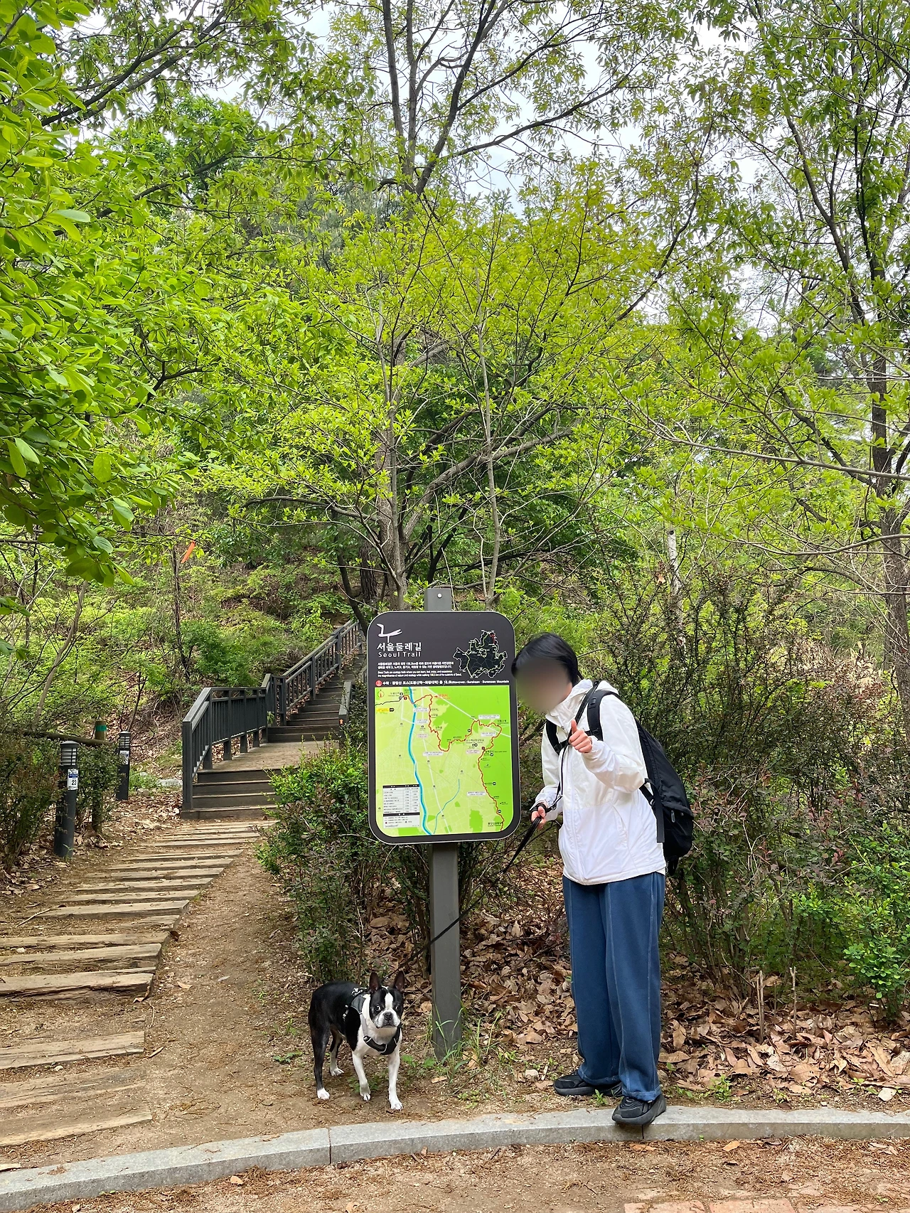 걷기와 등산을 즐겨하는 내 친구는 나에게 자주 등산이나 걷기 코스를 함께 하자고 권유한다. 이번에 친구는 서울 둘레길에 꽂혔는데 친구가 자신의 반려견 다온이와 함께 하자고 했다. 걷는 걸 좋아하는 나로서는 나쁘지 않은 제안이었다. 더군다나 다온이와 함께라니 이건 무조건 가야 한다. 4월에 가기로 했다. 그렇게 덥지 않은 달이라 딱이었다. 친구가 둘레길 1코스에 관한 블로그 글들을 찾아보고는 하루 만에 완주한 사람들이 많다며 오래 걸릴까.. 힘들진 않을까.. 하며 쫄아있는 나를 진정시켰다. 나는 친구의 말을 철석같이 믿었었다. 그리고 친구도 하루 만에 완주해 낼 것이라 확신했었다.