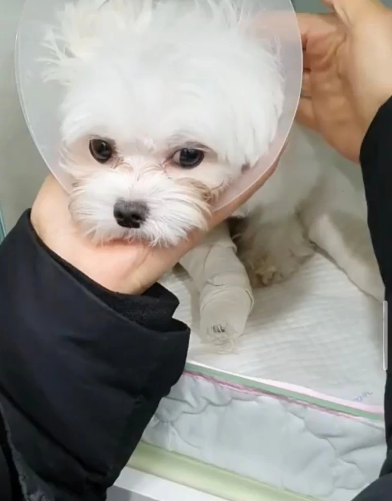 새롬이가 슬개골 쪽에 문제가 있다는 걸 알게 된 친구. 새롬이의 슬개골 수술이 결정됐다. 중성화 수술을 한지 얼마 지나지 않은 것 같은데 또 수술을 해야 한다니.. 걱정이 되지만 수술을 해야 새롬이가 아프지 않으니 미룰 수 없었다. 슬개골 수술을 위해 미용을 하고 입원을 했다. 걱정했던 것이 무색해질 만큼 새롬이는 씩씩하게 수술을 받고 깨어났다. 마취에서 깨면 소리 내면서 깨는 것이 보통인데 새롬이는 낑 소리도 내지 않고 깼다고. 정말 다행이다. 다시 한번 리틀 자이언트 새롬이의 씩씩함에 놀랐다.