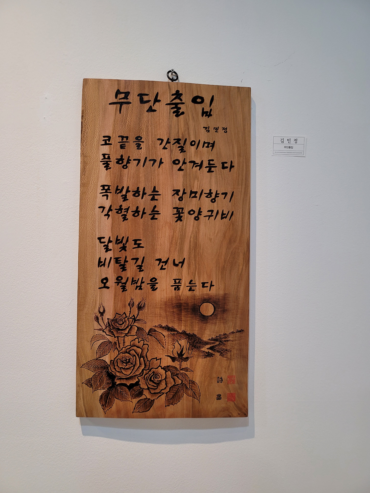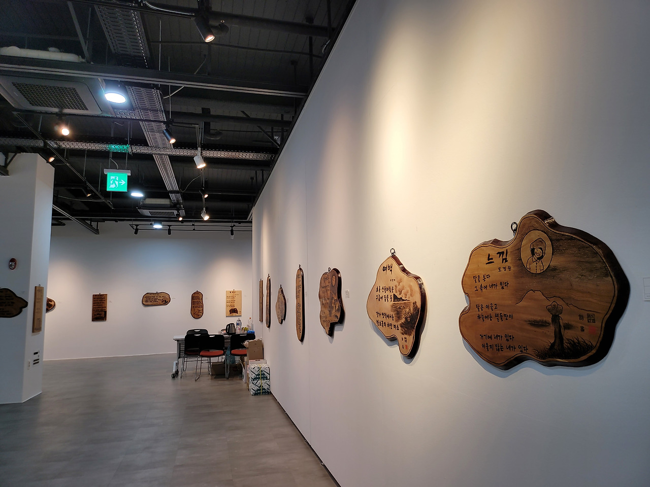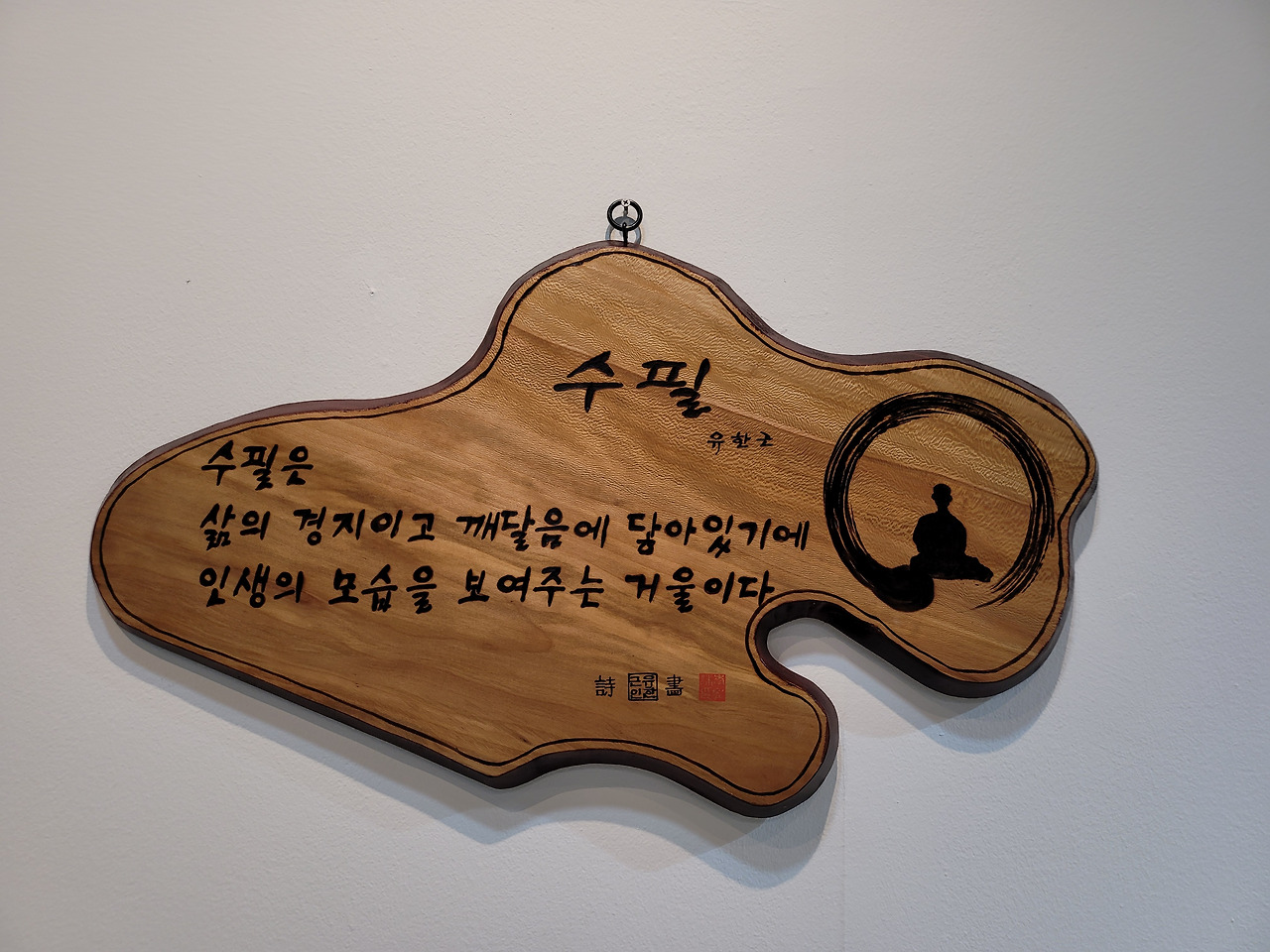 고문님께서 갤러리 지킴이로 수고한다고 피자를 들고 방문하셨다. 숙대 국문과를 졸업하시고 다수의 시집을 출간하셨다. 그간의 문단 활동으로 전시한 작품이 꽤 여러 개인데 이제는 비워야 할 때라며 지니고 계신 작품들을 모두 여기저기 나눠 주고 계신다는 말씀을 하셨다. 비워야 한다는 그 말씀이 잊고 잇던 내 마음을 불렀다. 비우고 채운다는 것에 의미를 알고는 있지만 잊고 살 때가 있다. 이 가을에 비우고 채워야 할 것들을 생각하게 하셨다.