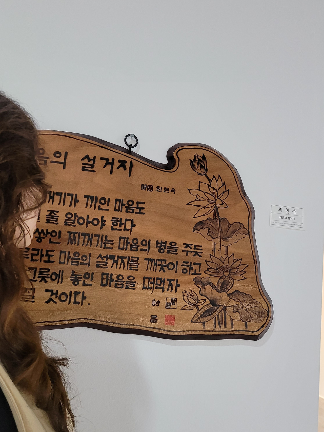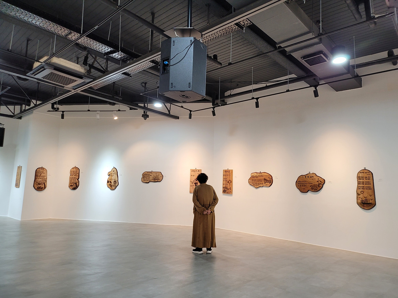 작품 뒤에서 작품을 감상한다. 작품 감상자의 뒷모습에서 가끔 생각할 때가 있다. 작품에 대한 어떤 생각을 담고 감상을 하고 있을지... 눈이 선생님의 뒷모습에서 한참 머물러 있었다. 그곳에 내 아버지와 어머님의 등이 있었고, 집안의 가장인 남편의 등이 있었고 먼 훗날의 나의 등이 선생님의 굽어진 등위에 있었다. 아름다운 시간에 머물러 그 시간들을 따라 흘러가야겠다는 생각을 했다.