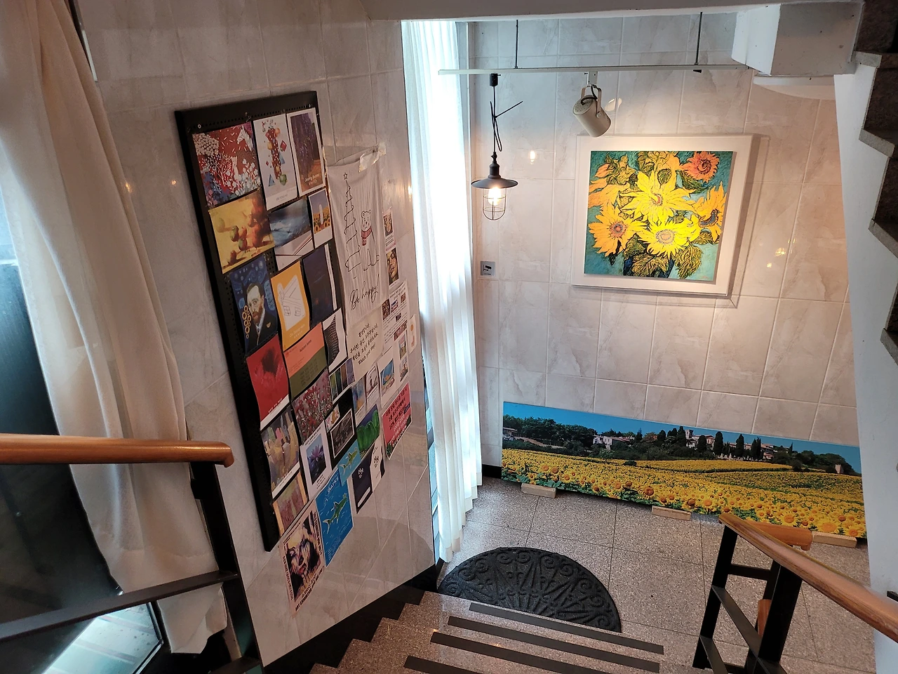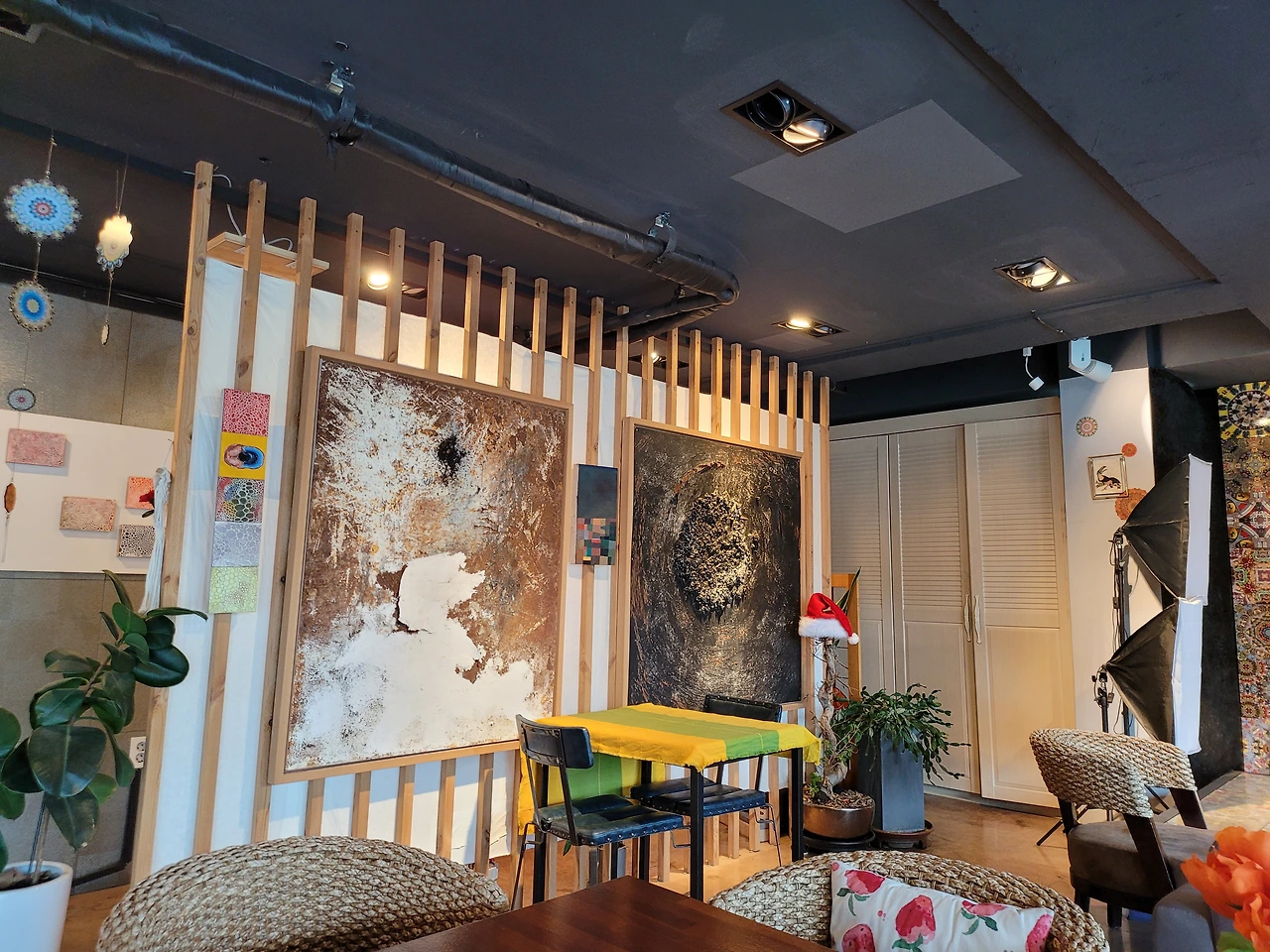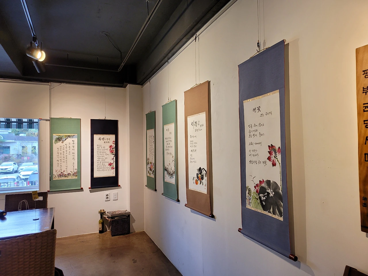 9월 초입에 첫 전시를 열었고 10월 지역 문화 행사 때 두 번째 전시를 가졌다. 이번 갤러리 카페는 문단의 20여 명 선생님들과 함께 하는 전시로 이달 말까지 이곳에 작품이 걸려 있을 예정이다. 올해 세 번째 전시를 갖게 되는 곳이다. 작가의 작품이 외부로 나갈 때에는 독자에게 더 가까이 다가갈 수 있는 기회 이기도 하지만 작가의 이미지가 걸리는 일이다. 내가 발행되어 어느 사이트에 걸려 있는 글이나 책이 전시되어 있는 서점도 마찬가지 일 것이다. 부족한 글이지만 작품 선택에 늘 신중하지 않을 수 없게 된다.