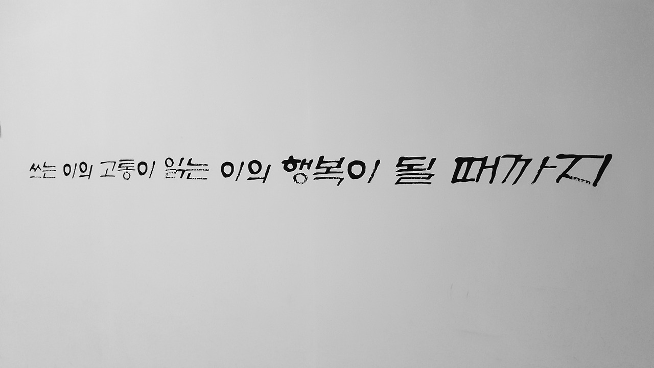 필자는 몇 해 전,작년에 고인이 되신 소설가 (故) 이외수 선생님을 인터뷰 다녀온 적이 있다. 지금은 작고 하시고 안 계시지만 당시는 이외수 문학관이 선생님께서 계시던 때이기에 국내 유일한 생존 문학관으로 알려졌었다. 관내에는 육필원고를 비롯해 사용하시던 붓과 책은 물론 이거니와 선생님의 흔적들이 고스란히 보존 기록되어 있으며, 가끔 공연을 할 수 있는 무대도 설치되어 있다. 인터뷰가 끝난 후 선생님께서 관내를 돌아다니며 문학관의 설립부터 그에 대한 소개를 해주셨다. 벽에는 직접 그리고 쓰신 이외수 선생님의 문장체가 여러 군데 들어 있다. 그중 마음을 헤집고 들어온 문구는 "쓰는 이의 고통이 읽는 이의 행복이 될 때까지"다.