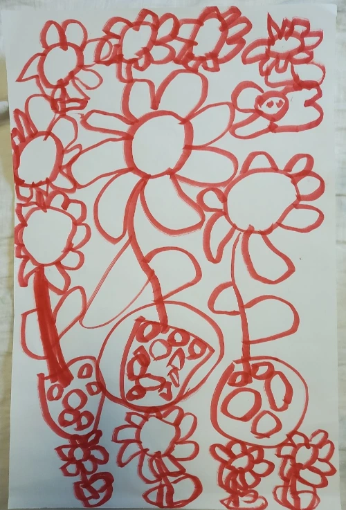 챙겨준 사랑이의 물품 중 그림 한 장이 눈에 뜨였다. 어린이집 활동 중 그린 꽃이라고 했다.