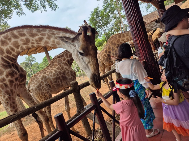 사파리 입구에서 무용수들이 민속춤을 추고 있었다. 원하면 사진도 찍을 수있었지만 부끄럼 많은 사랑이는 한사코 싫다고 했다. 이국적인 모습에 잠시 시선을 빼앗긴 후 입구로 들어섰다. 홍학들이 우아한 자태를 뽐내는 연못을 지나 툭툭이라고 불리는 셔틀 버기차를 타는 곳으로 향했다. 돈을 지불하니 팔찌를 하나씩 주었다. 사파리 내에서 언제든 타고 필요한 곳에 내려 관람하고 그다음 정류소에서 탈 수가 있다는 표였다.