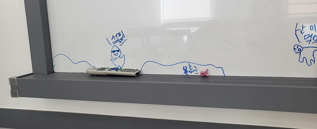 어떤 날엔 빅뱅에 꽂혀서 온 칠판 가득 빨간색으로 터지는 우주를 표현하기도 하고, 또 어떤 날엔 게임의 화면이 한가득 그려져있기도 했다.
