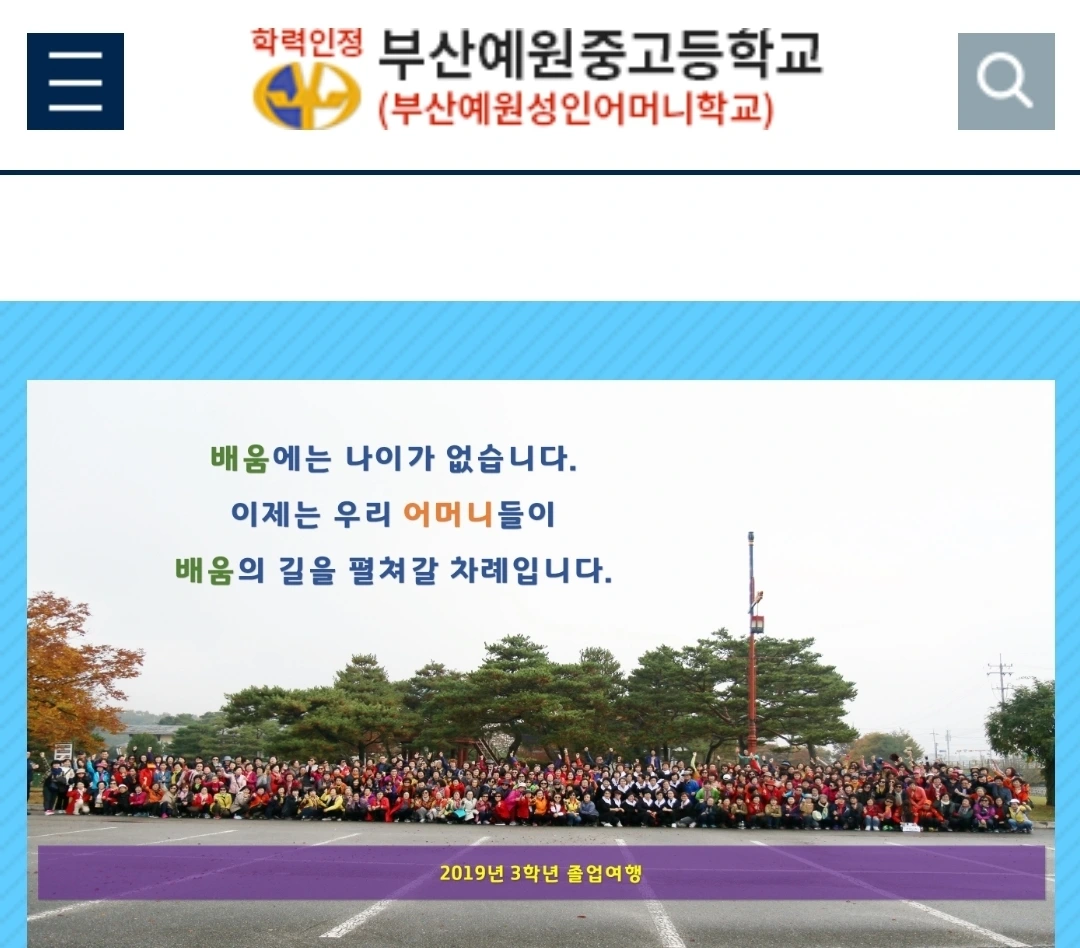 부산에는 어머니들이 중학교, 고등학교 과정을 공부할 수 있는 예원 중고등학교가 있다.