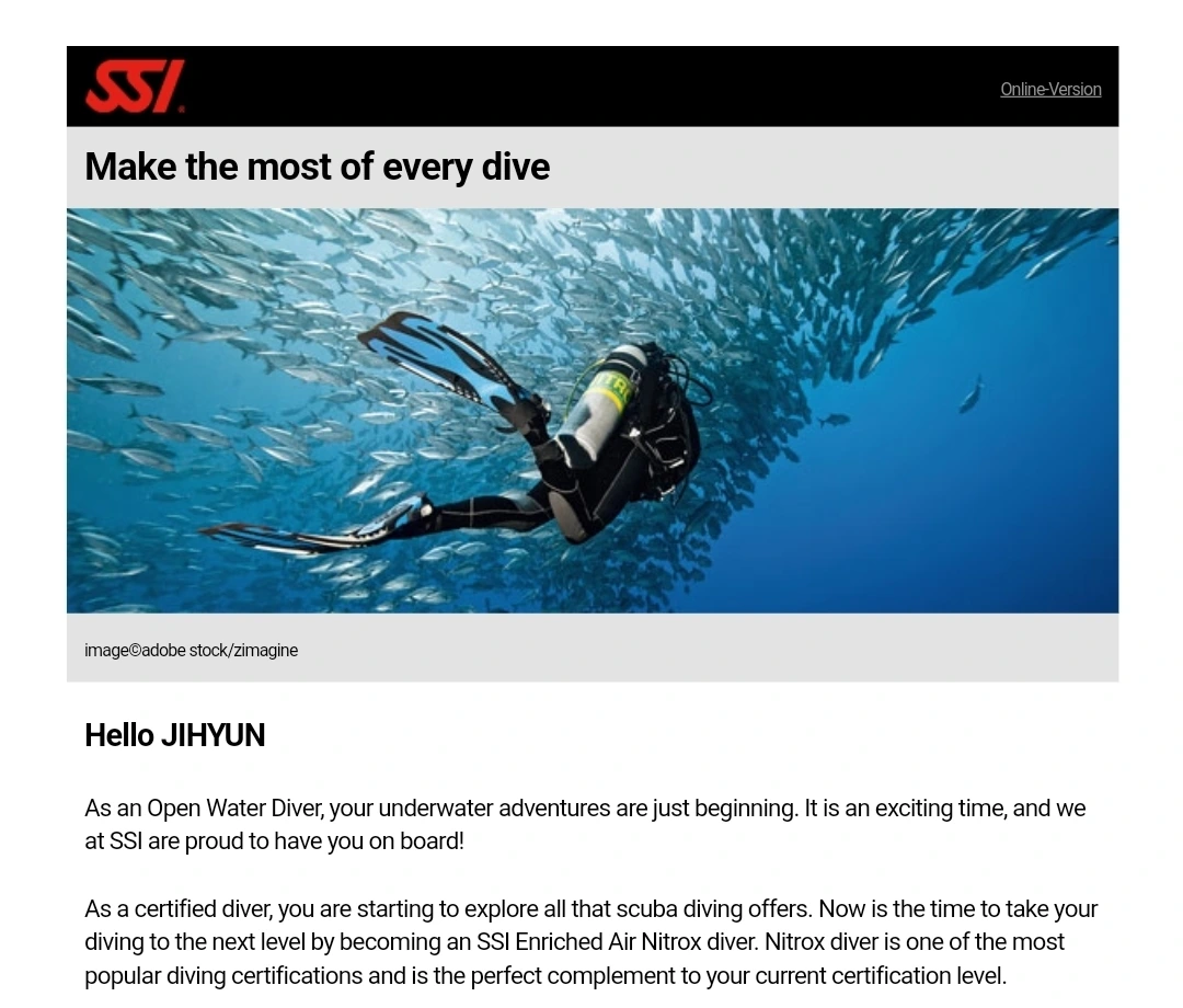 그때는 오픈워터 자격증보다 한 단계 업그레이드된 자격증을 가지고 있기를 바라며.