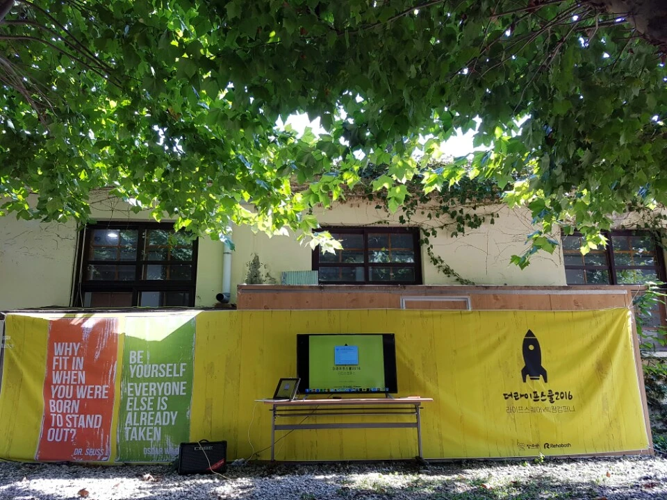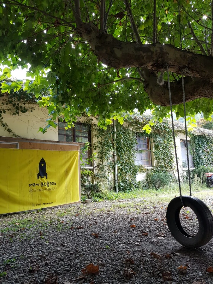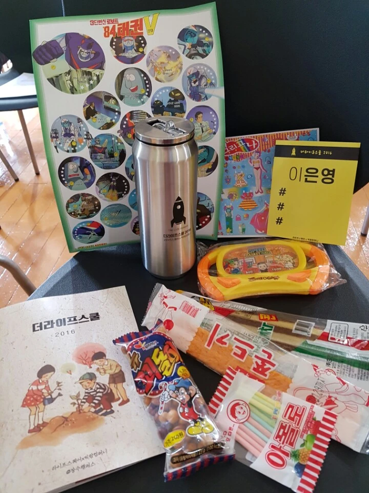 빽빽한 글씨와 칠판 대신 동심을 불러일으킬듯한 노란색 배경의 커다란 통 천. 추억의 딱지, 쏙 쏙 빼먹는 맛이 일품인 아폴로, 씹는 맛 제대로 쫄쫄이, 꾀돌이 과자, 언제 적 놀잇감 종이 인형들이 담긴 책가방을 받으니 아 내가 진짜 학교에 왔구나를 실감할 수 있었다. 뛰어놀고 싶고, 땀 흘리 고프고, 마음을 모으고 싶었다. 그래서 눈 앞에 보면서도 실감할 수 없는 탁 트인 잔디밭에서 축구를 하고, 잡기 놀이를 하고, 세상에 태어나 처음 만난 사람들과 마음을 모아 이야기했다.