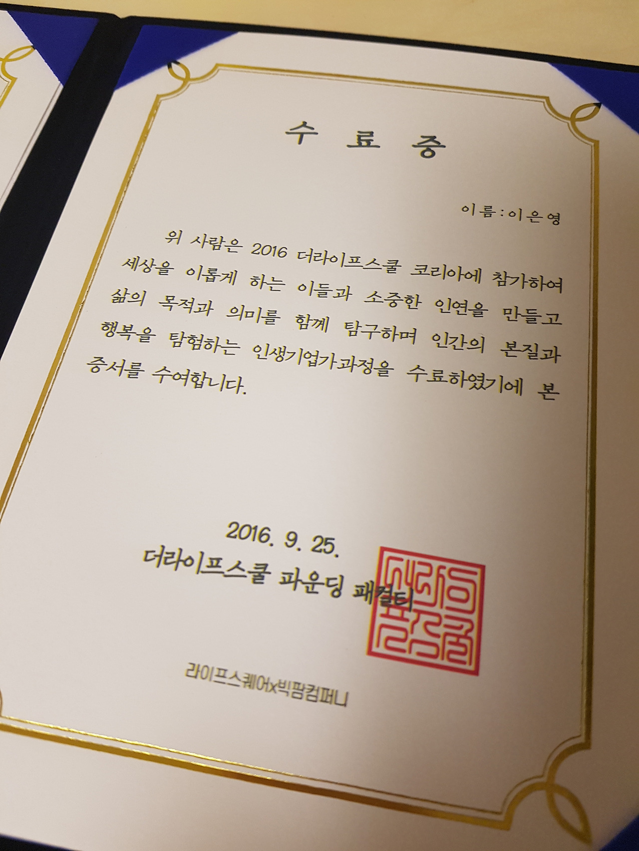 어른들을 위한 인생학교 더라이프 스쿨을 졸업하며 나는 알 수 있었다.