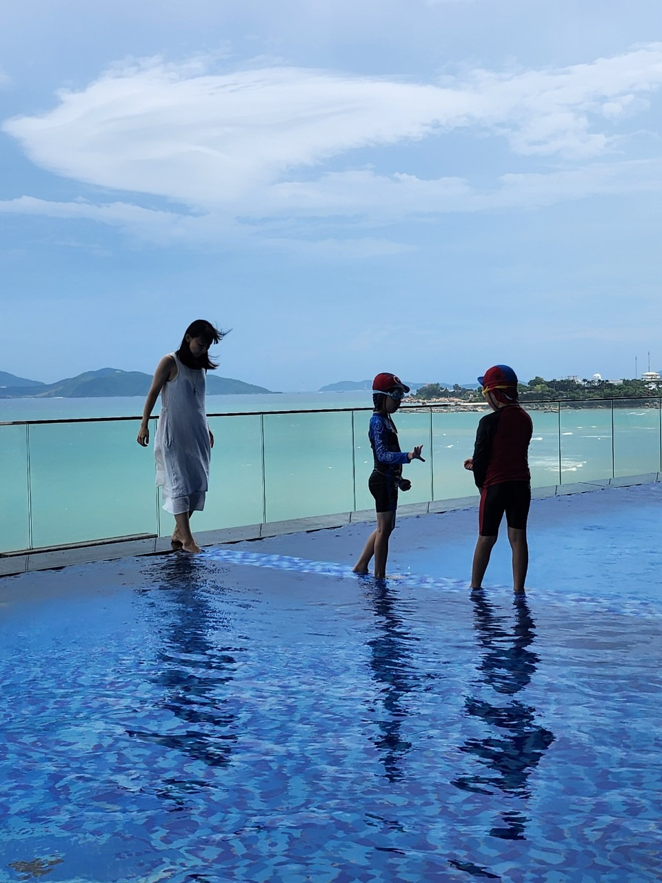 둥이 조카들은 아기 때부터 물을 좋아했다. 목욕을 좋아해서 욕조에 물을 받아놓고 거의 매일 목욕하며 물놀이를 즐겼다. 아직 수영장이나 바다에 들어가 보지 못했을 적에 물안경을 먼저 사 주었는데 그걸 쓰고 욕조에서 수영 놀이를 하곤 했다. 처음 바다를 보고는 그 거대함에 압도당했는지 조금 두려워하는 모습을 보이며 파도에 따라 소리를 지르며 뛰어다녔다. 모래사장에서 모래놀이를 하고 조금씩 물 가까이 다가가며 자연스럽게 바다를 받아들이게 된 것 같다. 엄마를 똑 닮은 오빠는 둥이들이 물을 좋아하는 걸 보며 슬금슬금 수영을 가르치려 들었다. 엄마도 이에 동조하여 둥이들은 아빠와 할머니의 개인 트레이닝을 받게 되었고 조금씩 실력이 늘었다. 물을 무서워하지 않고 옆에서 함께 해 주는 안전한 동반자가 있으니 확실히 나이 지는 모습이 보였다.