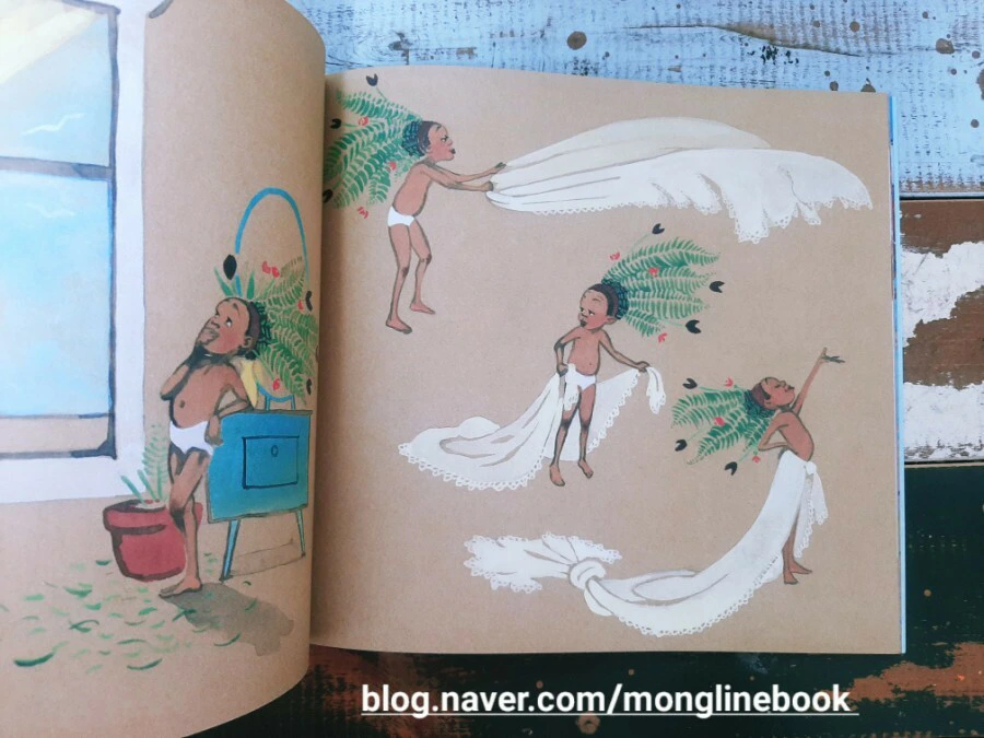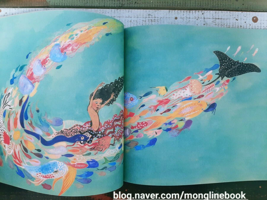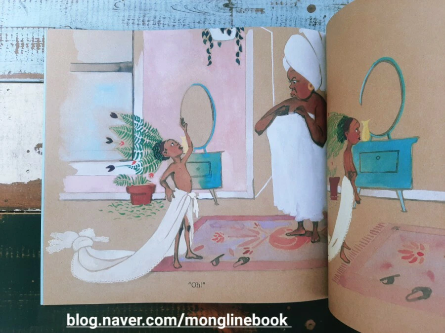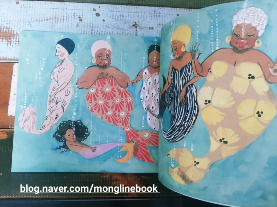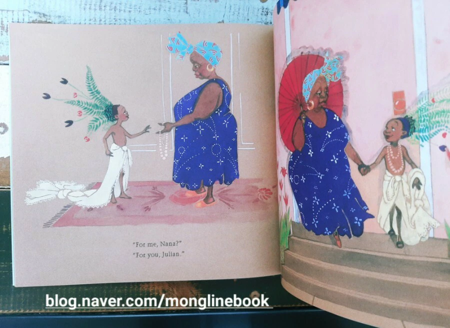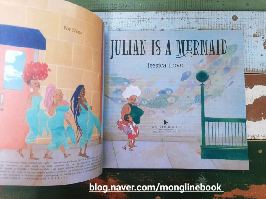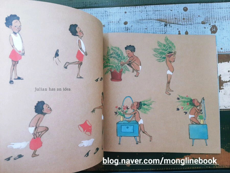 저는 이 그림책을 읽으면서 화려하고 아름다운 인어를 동경하며 인어가 되고 싶어 하는 Julian의 마음이 우리 조카들의 마음과 다르지 않을 거라는 생각을 했습니다. 평소에는 입지 않는 옷과 화려해 보이는 액세서리 같은 것들을 보면 나도 한번 해보고 싶다는 생각이 들 것 같습니다.