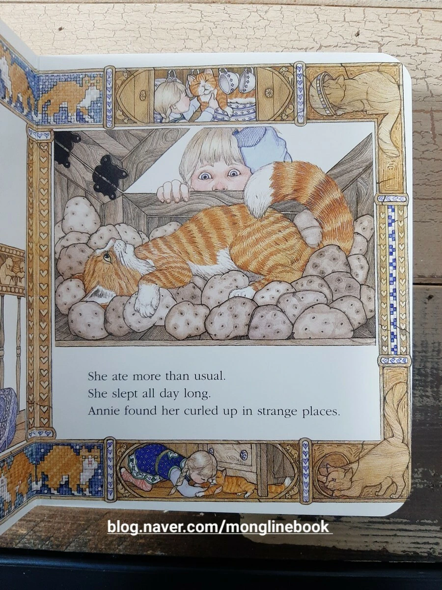 애니의 고양이 태피는 요즘 좀 이상합니다. 애니랑 놀아 주지도 않고 평소보다 많이 먹어요. 하루 종일 잠만 자고 자꾸 이상한 곳으로 기어들어갑니다.