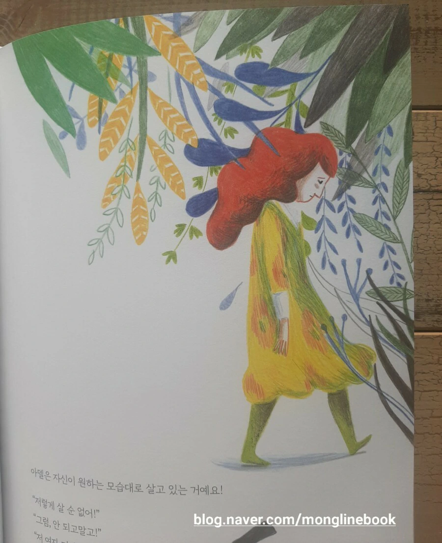 자신이 원하는 모습대로 살고 있는 아델이 부럽다는 생각이 들었습니다. 하지만 타인의 시선을 의식하지 않을 수가 없지요. 본인을 이상하게 생각하니까 아델은 속상한 표정을 짓습니다.