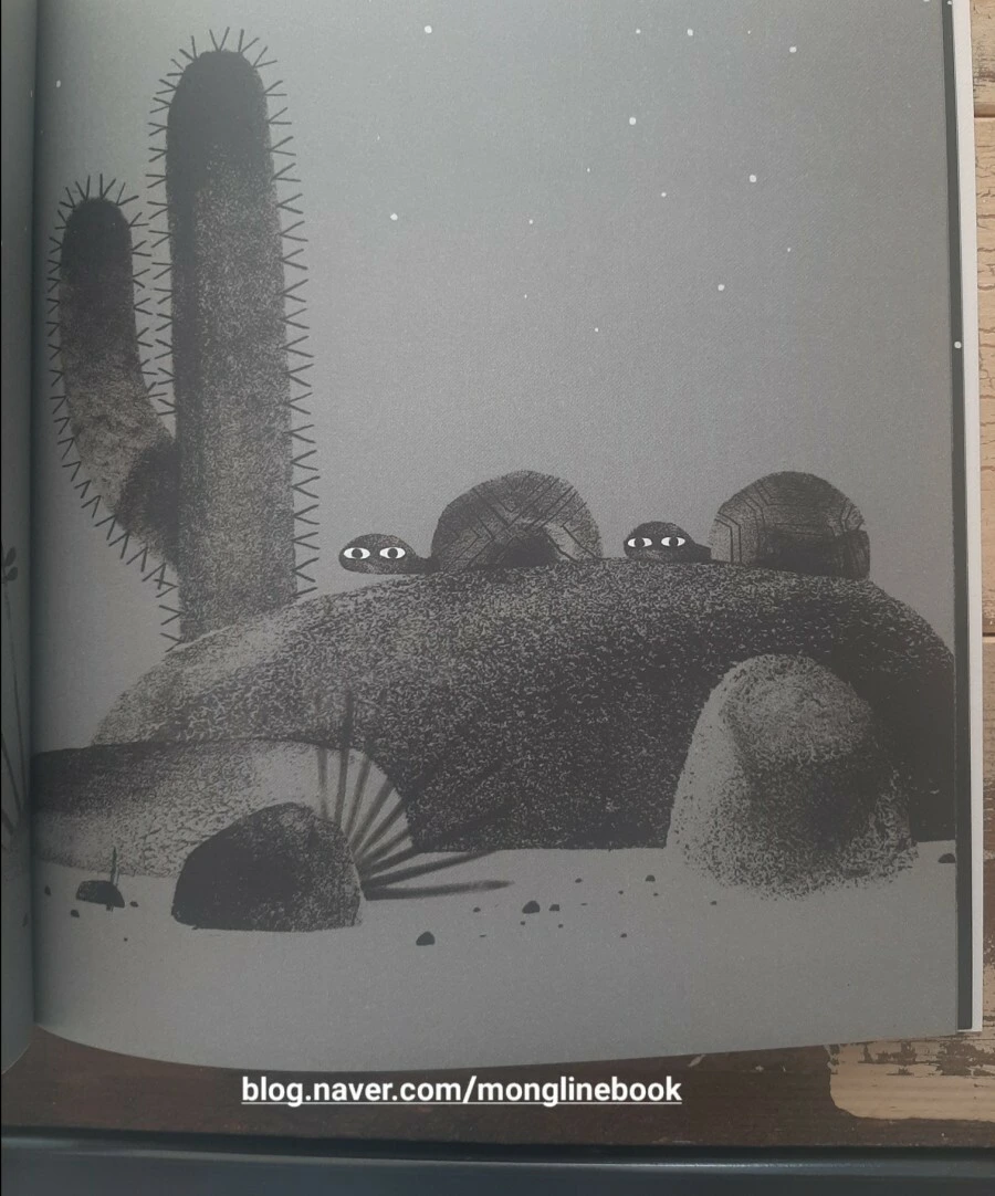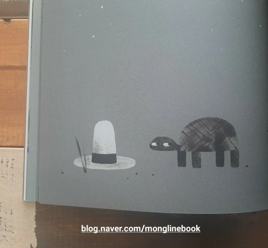 모자 쪽으로 다가가던 거북이는 다시 돌아와서 같은 꿈속으로 빠져들어갑니다. 꿈속에서는 둘 다 모자를 쓰고 있네요.