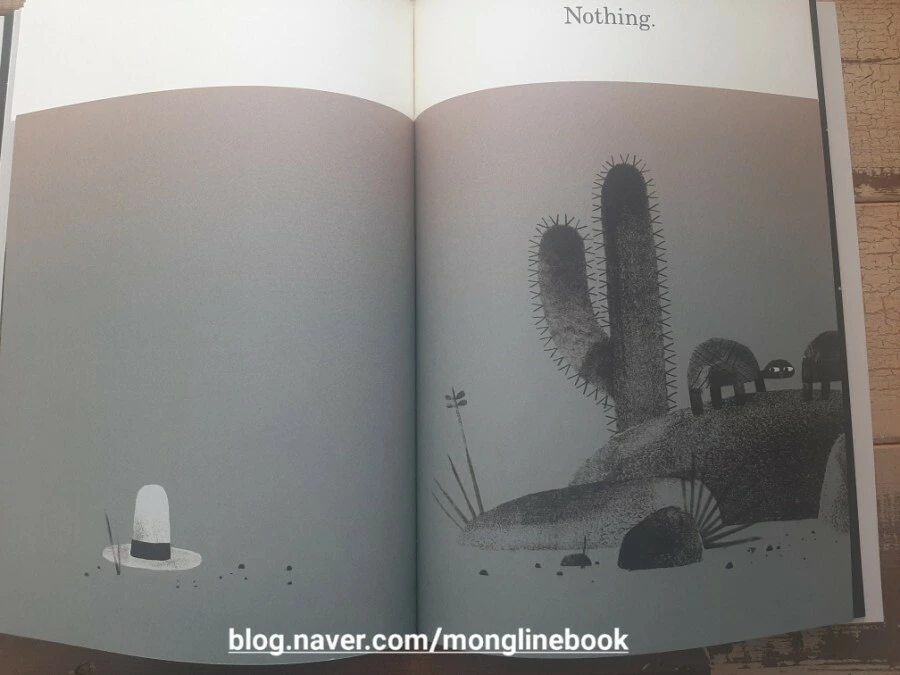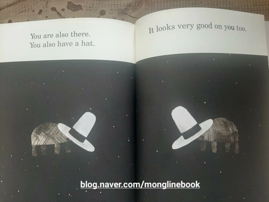 이 책은 앞의 책과는 조금 다른 구성을 가지고 있습니다. '함께'라는 구성입니다. 혼자서 모자와 겪는 이야기가 아니고, 둘이서 함께 하나의 모자를 두고 겪는 이야기입니다. 한 마리는 둘을 위해서 깨끗하게 모자에 대해서 포기하고는 그것에 대해 잊고 있는 것 같습니다. 하지만 나머지 한 마리는 자꾸 모자에 미련이 남는 듯한 행동을 하고 있습니다.