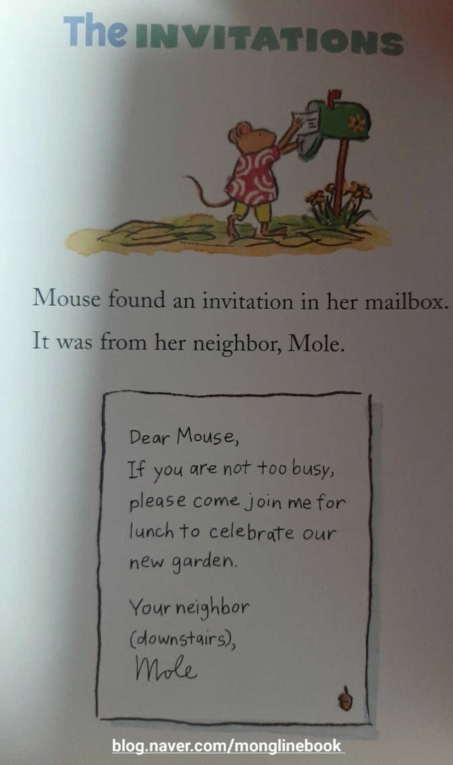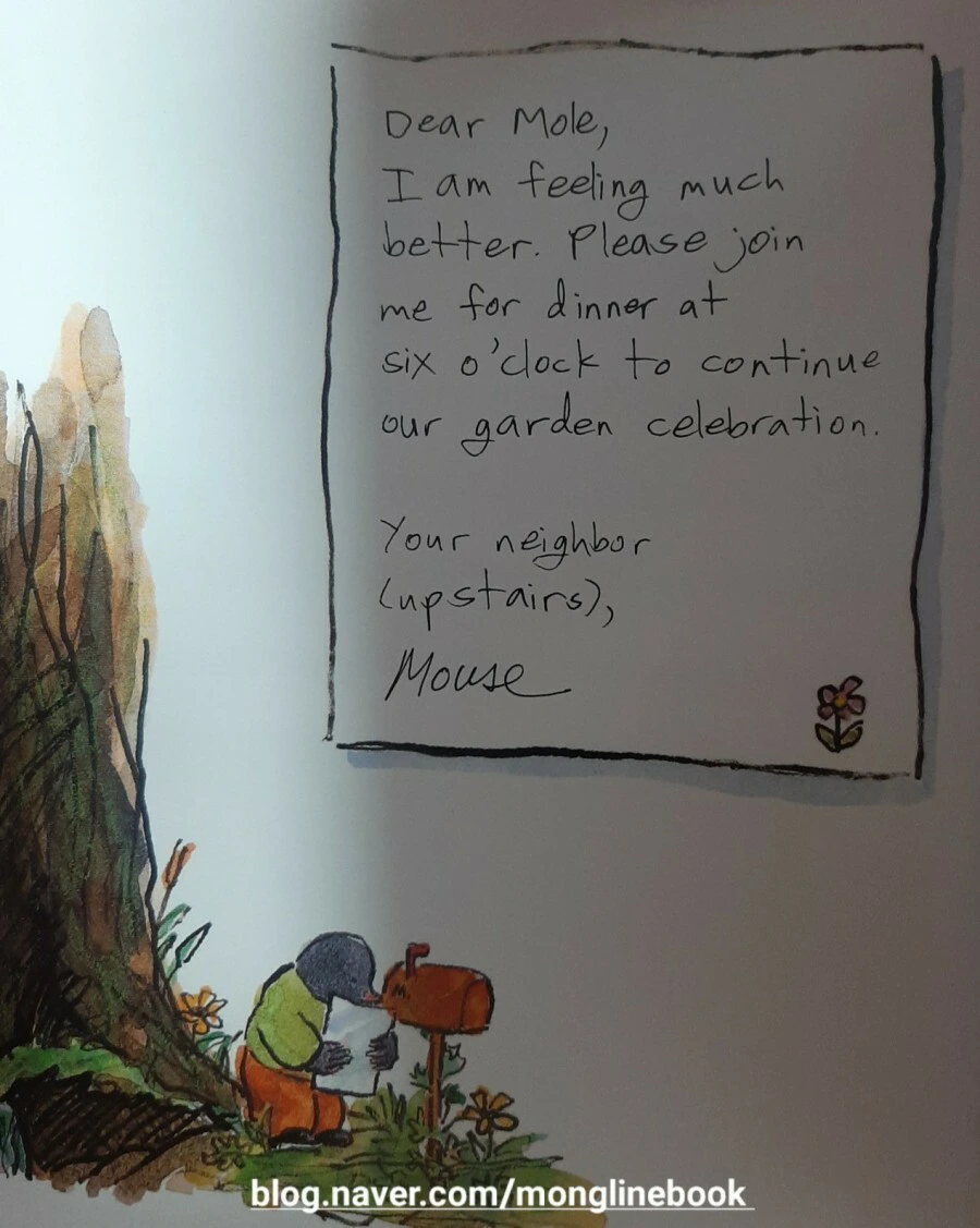 몸이 괜찮아진 생쥐는 두더지를 저녁식사에 초대합니다.