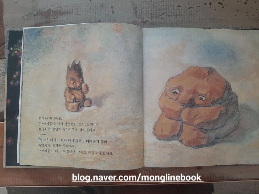 흙덩이는 강아지똥을 달래줍니다. 어쩌면 자신이 더 흉측하고 더러울지도 모른다며 자신의 이야기를 들려줍니다.