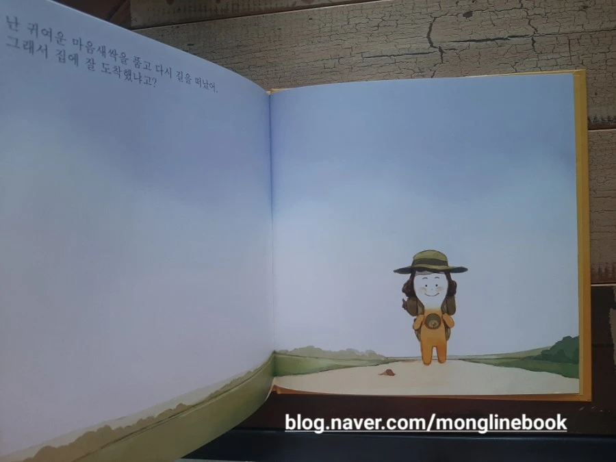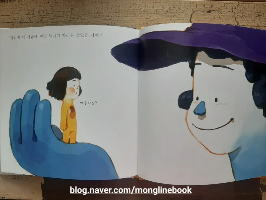 그리고 나의 마음이 작아진 것이 아니고 마음자리가 커진 것이라고 이야기해줍니다. 나의 두려움과 고단함을 지나면서 조금씩 마음자리가 커진 것이니까 너무 슬퍼하지 말라고 이야기해 줍니다. 그리고 그 커진 마음자리에 마음씨앗을 날려 보내 주었다고 이제 자라기 시작한 마음 싹을 마음자리의 크기에 맞게 잘 가꾸어 보라고 용기를 북돋아줍니다.