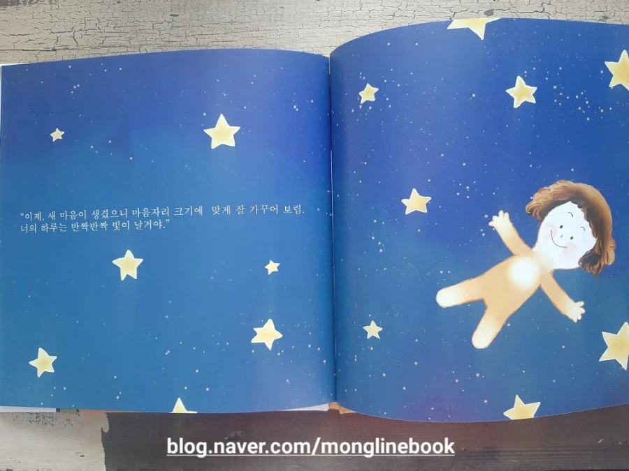 "이제, 새 마음이 생겼으니 마음자리 크기에 맞게 잘 가꾸어 보렴. 너의 하루는 반짝반짝 빛이 날 거야."
