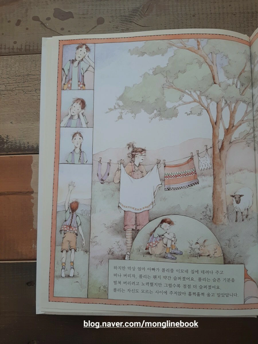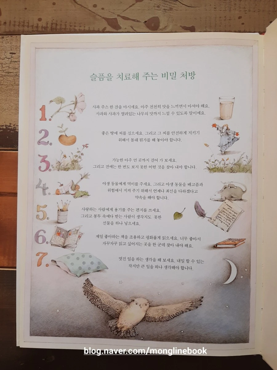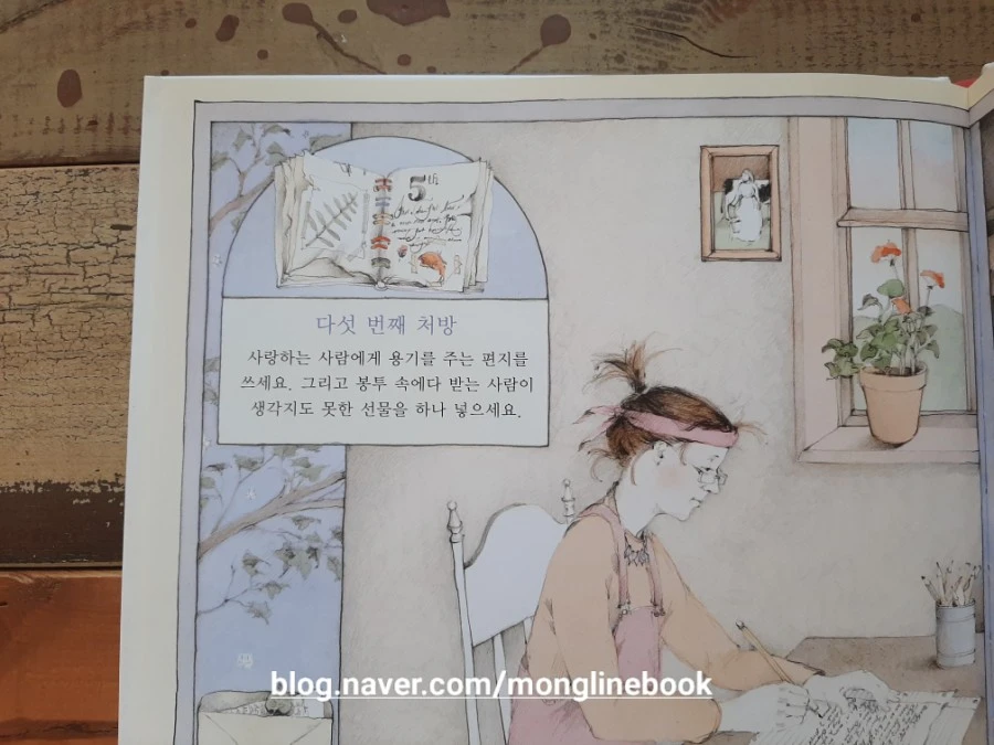 이 책에서 제인 이모와 롤리는 <슬픔을 치료해 주는 비밀 책>에 적혀 있는 대로 하나씩 하나씩 함께 해봅니다. 그러면서 슬픔이 희망으로 바뀌어 가는 것을 느끼게 됩니다.