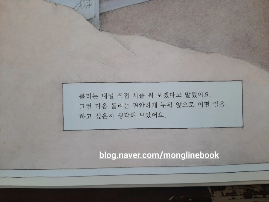 - 혹시 좋아하는 책이 떠오르지 않는다면 그림책을 추천해 드립니다. 그림이 예쁜 책들을 읽어보세요. 그리고 마음에 드는 그림을 자꾸자꾸 보는 거예요.